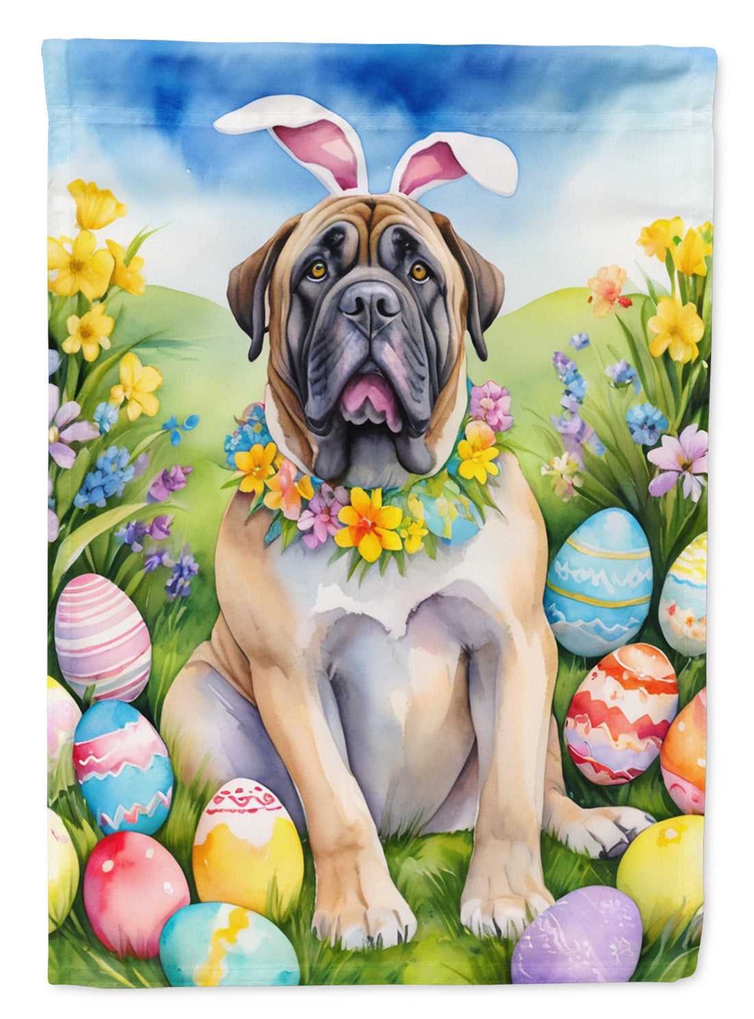 Decorate your space with our Easter Mastiff artwork on a Large Flag. Presenting our Heavy Duty Polyester House Size Decorative Sleeve Pole Flag, a vibrant addition to enhance the aesthetic appeal of your home. This large decorative flag, measuring approximately 28 x 40 inches, offers ample coverage and visibility. Each flag is meticulously sewn and made individually, ensuring a unique piece that may slightly vary in size. It's a sleeve pole flag, designed to fit a standard decorative flag pole effortlessly. Please note that the flag pole and bracket are not included and should be purchased separately. What sets our flag apart is its dual-sided print. The design is mirrored on both sides of the fabric, allowing for uniform visibility regardless of the angle. Printed in full color, our flag showcases vibrant hues that truly stand out. To ensure lasting vibrancy and durability, the dyes are heat-set into the fabric. This ensures your flag remains bright and captivating through various weather conditions. Elevate the look of your home with our Heavy Duty Polyester House Size Decorative Sleeve Pole Flag!