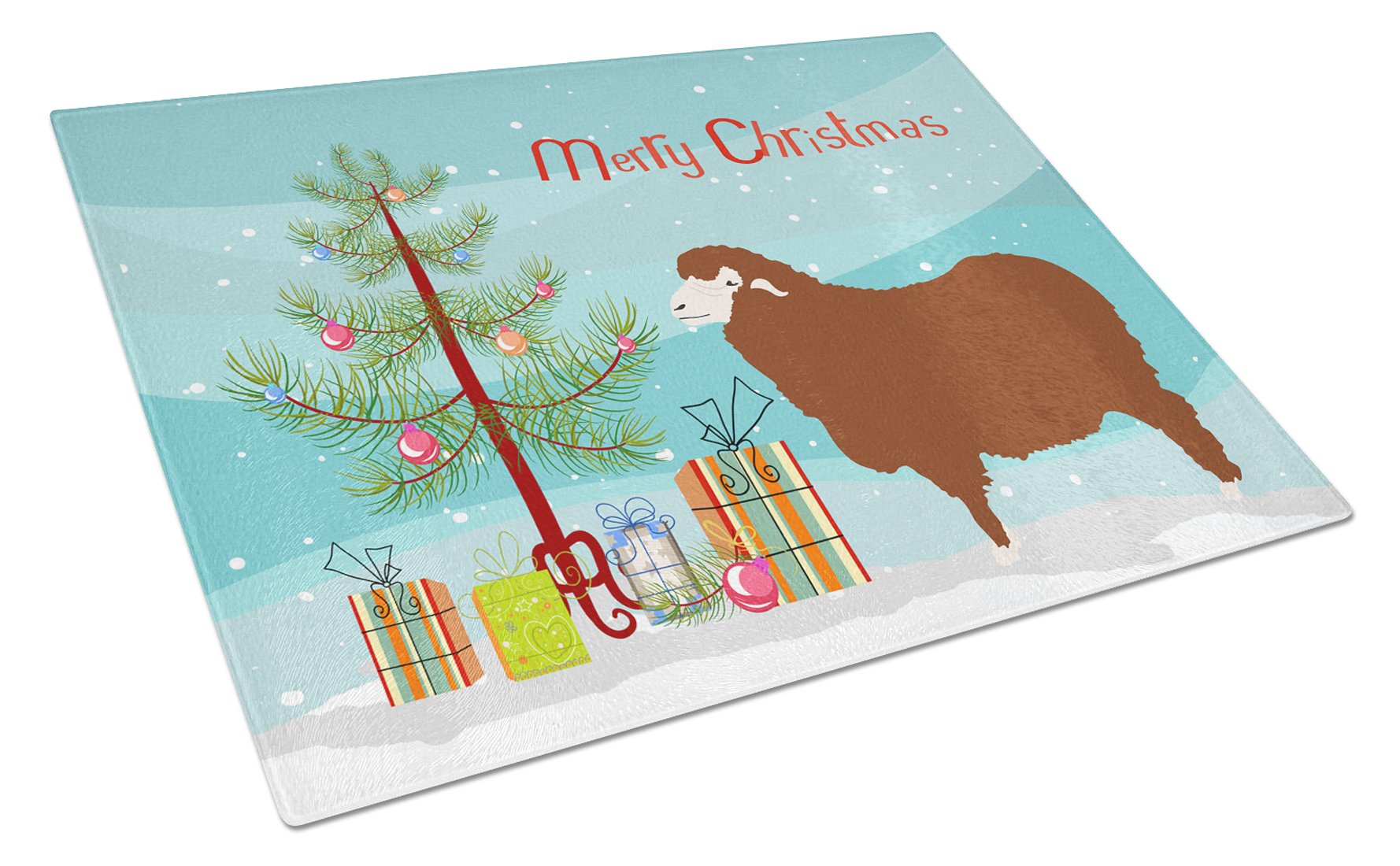 Decorate your space with our Christmas Merino Sheep artwork on a Cutting Board. Introduce your kitchen to the vibrant, large Decorative Glass Cutting Board from Caroline's Treasures. Crafted from resilient tempered glass, this board is not only a utilitarian necessity but also a colorful art piece. With its generous dimensions of 15 inches in height and 12 inches in length, it offers ample space for all your cutting needs. Every piece showcases captivating artwork from distinguished artists, bringing an aesthetic edge to your kitchen. Beyond its attractive design, this cutting board ensures your countertop stays pristine and unscathed, owing to its heat-resistant properties. Engineered with user convenience in mind, it features non-skid feet for stability, and rounded corners for additional safety. Its robust construction renders it virtually unbreakable, guaranteeing longevity. The board comes with protective feet bumpers, maintaining its position during use. This product is recommended to be hand washed only. Proudly printed and assembled in the United States, this cutting board exemplifies superior craftsmanship. With Caroline's Treasures' Decorative Glass Cutting Board, you're investing in a blend of functionality and artistic flair.