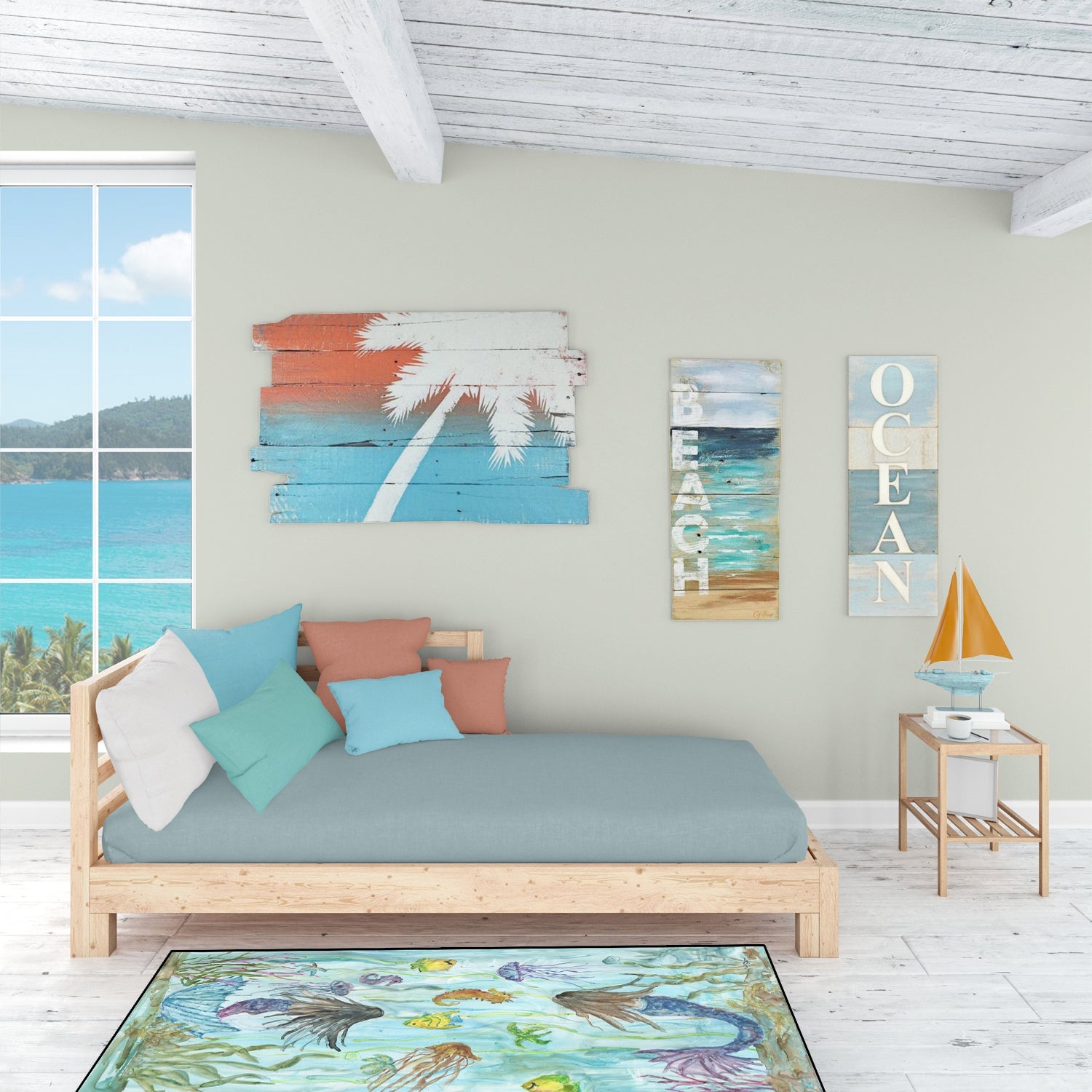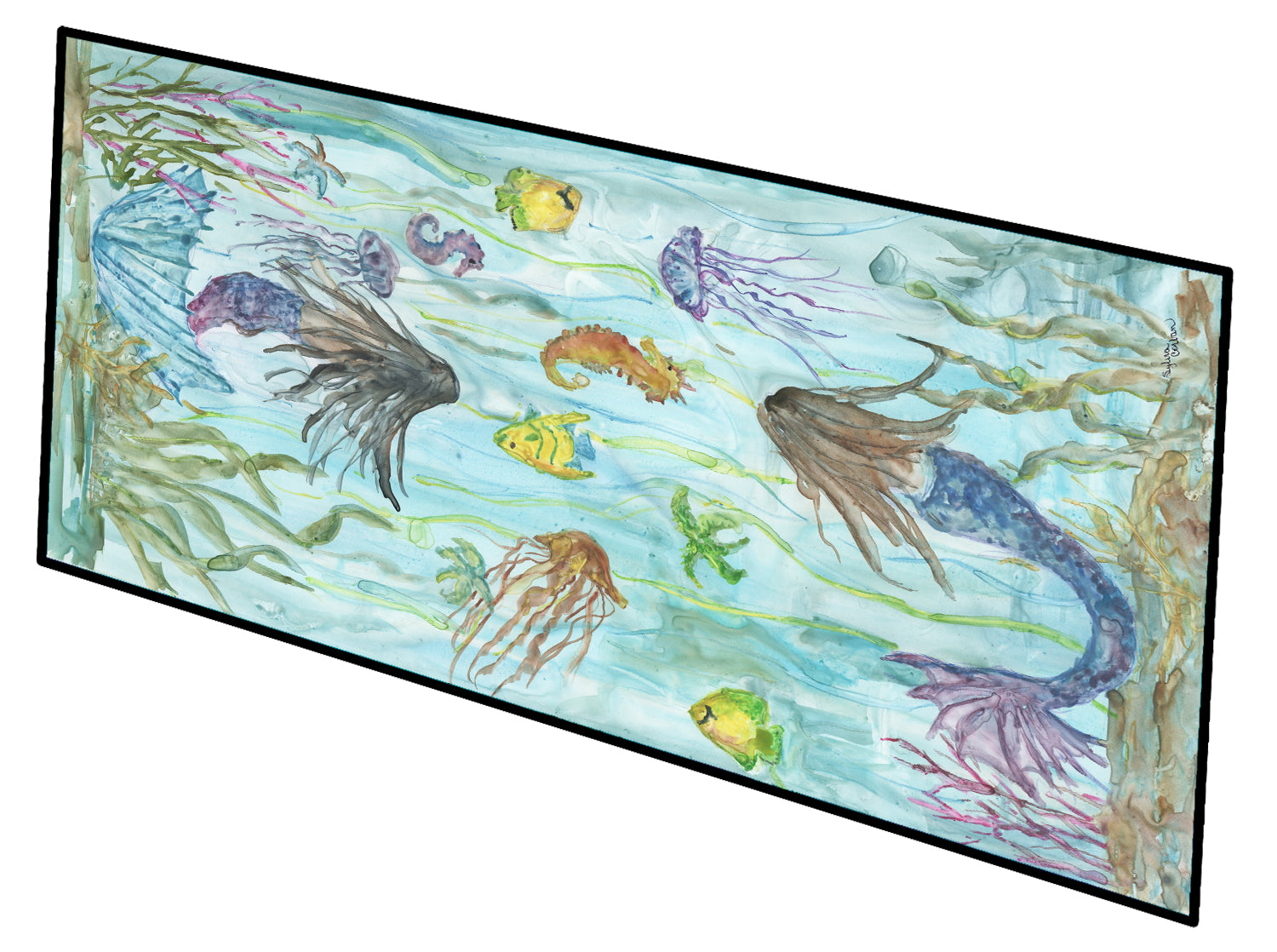 Transform your living space with Caroline's Treasures Decorative Indoor/Outdoor Runner Mat. Measuring 28 inches by 58 inches, this versatile floor runner is suitable for both indoor and outdoor use, perfect for defining spaces and adding a touch of artistic flair to your decor. Proudly made and printed in the USA, this floor mat features an action back felt point design, framed by a durable black binding tape that enhances the vibrant artwork. It is dyed permanently for moderate traffic, ensuring it maintains its unique design despite everyday use. The mat's rubber backing enhances its stability, preventing slipping on smooth surfaces, making it a safe choice for your home. Designed to be durable and fade-resistant, this mat withstands the test of time and elements, especially when placed under a covered outdoor space. Cleaning is a breeze - simply wash with non-sudsy cleaner and water, use pressure from a garden hose, power washer, or vacuum it like a hardwood floor. Part of the Seafood category, this mat is more than a floor accessory; it's a statement of style.