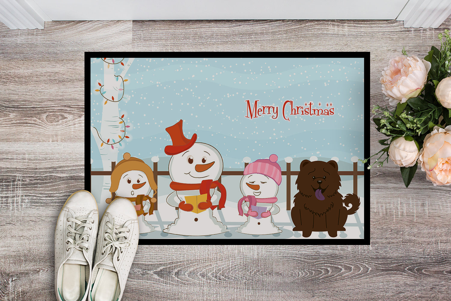 Merry Christmas Carolers Chow Chow Chocolate Doormat - 24x36 Decorative Floor Mat – Indoor/Outdoor Rug with Artistic Flair BB2472JMAT