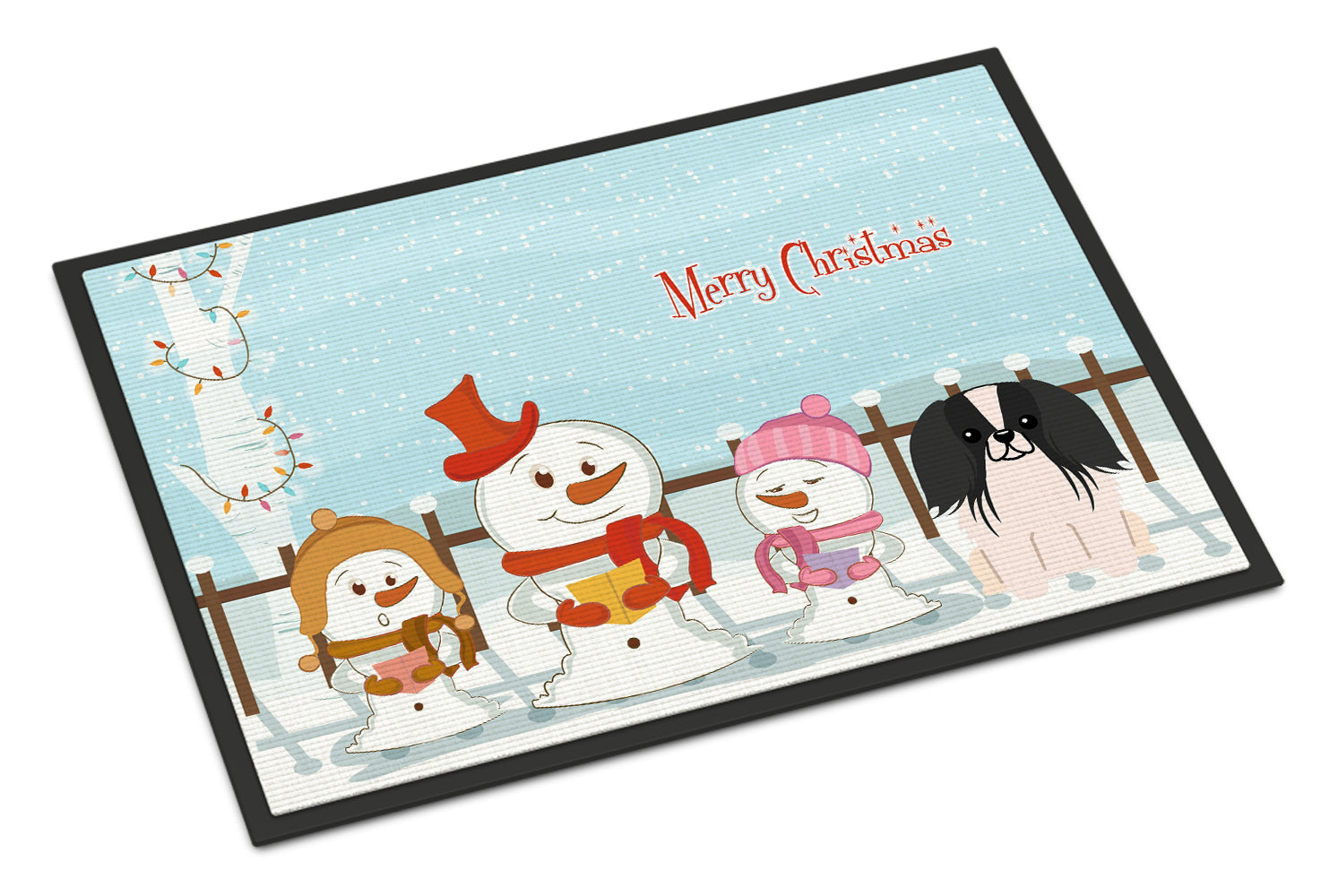 Decorate your space with our Christmas Pekingese artwork on a Doormat. Welcome your guests in style with our Artwork Door Mat, designed to withstand almost any weather condition. This mat, measuring approximately 24 by 36 inches, is held together by durable black binding tape. Its top layer, composed of polyester felt, is dyed with the eye-catching image you see on the mat. A few layers below provide the mat with stability, while its rubber bottom is stamped to help prevent slipping and ensures safety. Our mat works wonderfully as both an indoor or outdoor door mat. For cleaning, simply hose it off with water or use a power washer - no need for any cleaner that produces suds. Avoid scrubbing with a brush, instead, opt for the vacuum on floor setting. Designed manufactured and printed in the USA, this mat is a perfect addition to your porch, outdoor kitchen, entryway, or any indoor space. Its unique design makes it a charming decorative rug that greets your guests and adds a stylish touch to your home decor.