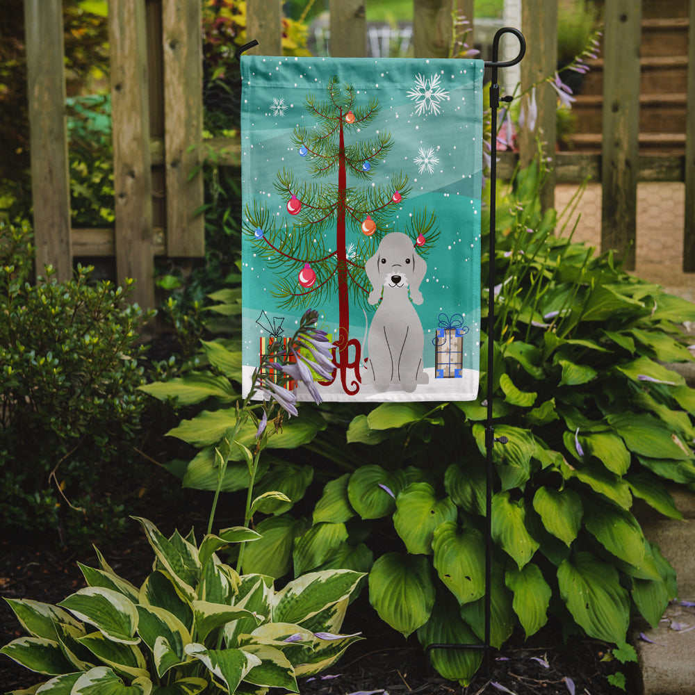 Decorate your space with our Christmas Bedlington Terrier artwork on a Garden Flag. Enhance the beauty of your garden, patio, or yard with Caroline's Treasures Decorative Garden Flag, proudly made in the USA. Crafted from two pieces of thick, double-sided polyester fabric, this 2-ply garden flag is designed to withstand various weather conditions, making it water-resistant and weatherproof. Featuring correctly readable words on both sides, this garden flag offers a delightful visual experience from any angle. With its heavier weight, it stands out among other garden flags, ensuring stability and durability even in wind, rain, and snow. Measuring approximately 11 1/4 inches by 15 1/2 inches, this flag allows you to personalize your outdoor decor. It comes with a 1 1/2-inch sleeve sewn in, allowing easy attachment to any standard garden flag stand or garden size porch hanger (sold separately). Make a statement in your outdoor space with Caroline's Treasures Decorative Garden Flag, a vibrant and high-quality flag that adds color and personality to your surroundings. Proudly made in the USA, it's a symbol of quality craftsmanship and attention to detail.