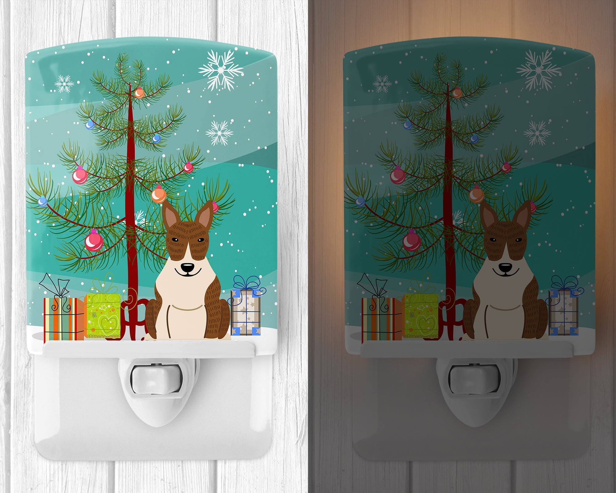 Decorate your space with our Christmas Bull Terrier artwork on a Night Light. Introduce a splash of artistic flair and subtle illumination to your space with the Decorative Ceramic Night Light from Caroline's Treasures. Perfect for any room, this night light seamlessly blends functionality with an aesthetic appeal, offering a stylish solution to brighten up dark corners of your home or office. Boasting a six-inch high by four-inch wide ceramic tile at the front, it showcases vivid, full-color artwork from distinguished artists, transforming a simple utility into a vibrant art piece. The artwork is securely encased in a robust metal holder, ensuring durability and longevity. Two screws are provided to firmly affix the tile into the holder. The holder extends three inches deep, housing an included bulb that emits a soft, welcoming glow. This product meets all safety standards, as evidenced by its UL approval. Proudly made in the United States from imported components, this Decorative Ceramic Night Light is not just a functional device; it's a statement piece that enhances the ambiance of your surroundings.