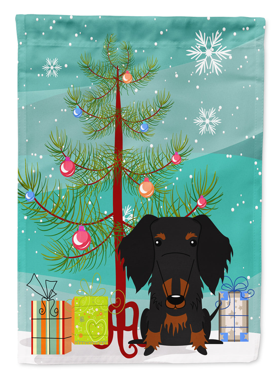 Merry Christmas Tree Wire Haired Dachshund Black Tan Garden Flag - Outdoor Decorative Yard Flag BB4252GF