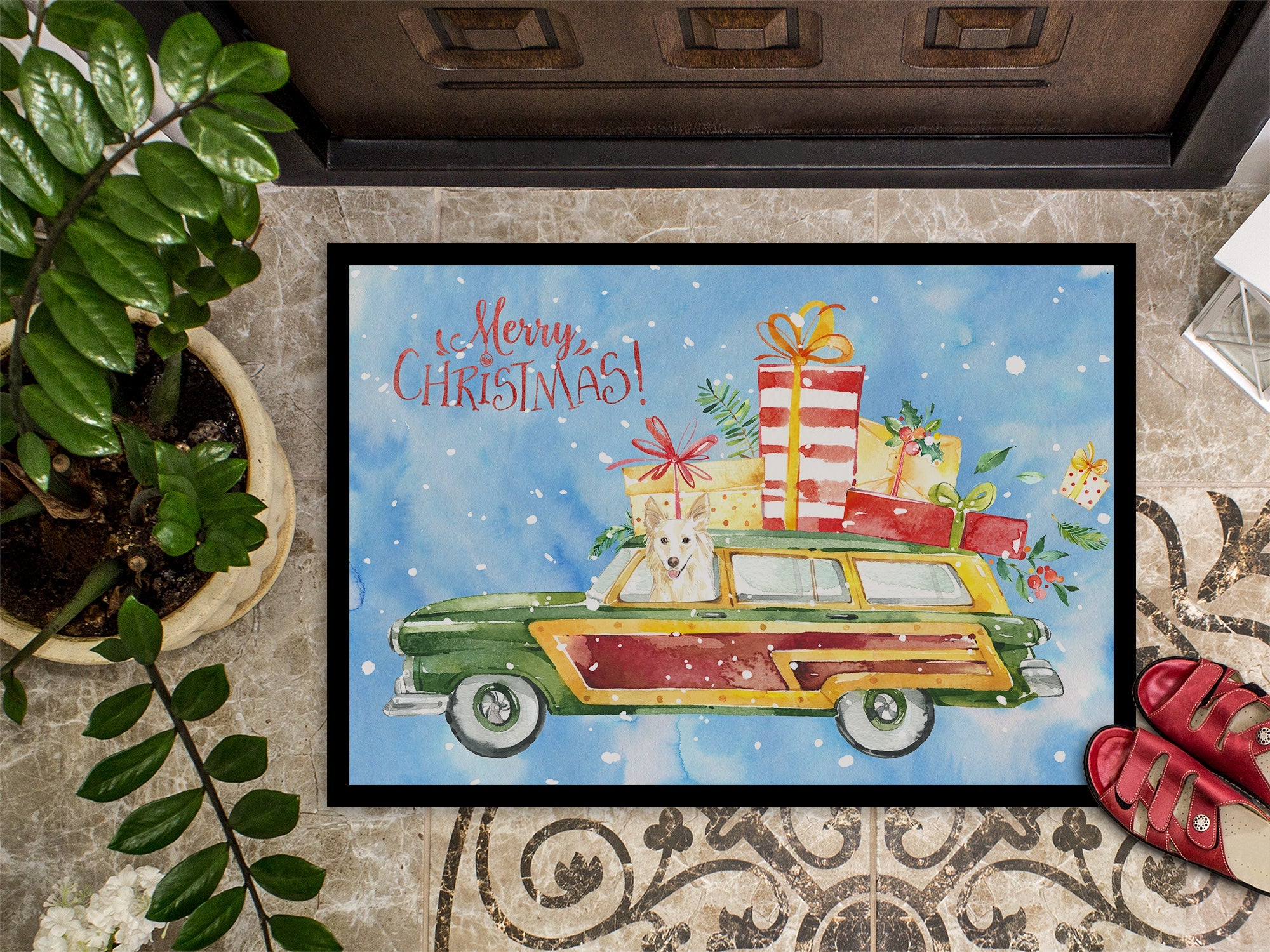 Decorate your space with our Christmas Collie artwork on a Doormat. Welcome your guests in style with our Artwork Door Mat, designed to withstand almost any weather condition. This mat, measuring approximately 24 by 36 inches, is held together by durable black binding tape. Its top layer, composed of polyester felt, is dyed with the eye-catching image you see on the mat. A few layers below provide the mat with stability, while its rubber bottom is stamped to help prevent slipping and ensures safety. Our mat works wonderfully as both an indoor or outdoor door mat. For cleaning, simply hose it off with water or use a power washer - no need for any cleaner that produces suds. Avoid scrubbing with a brush, instead, opt for the vacuum on floor setting. Designed manufactured and printed in the USA, this mat is a perfect addition to your porch, outdoor kitchen, entryway, or any indoor space. Its unique design makes it a charming decorative rug that greets your guests and adds a stylish touch to your home decor.