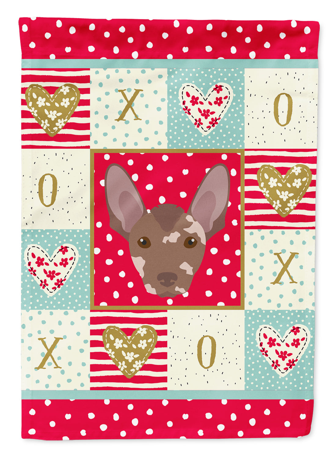 Decorate your space with our Valentine's Day Mexican Hairless Dog artwork on a Garden Flag. Enhance the beauty of your garden, patio, or yard with Caroline's Treasures Decorative Garden Flag, proudly made in the USA. Crafted from two pieces of thick, double-sided polyester fabric, this 2-ply garden flag is designed to withstand various weather conditions, making it water-resistant and weatherproof. Featuring correctly readable words on both sides, this garden flag offers a delightful visual experience from any angle. With its heavier weight, it stands out among other garden flags, ensuring stability and durability even in wind, rain, and snow. Measuring approximately 11 1/4 inches by 15 1/2 inches, this flag allows you to personalize your outdoor decor. It comes with a 1 1/2-inch sleeve sewn in, allowing easy attachment to any standard garden flag stand or garden size porch hanger (sold separately). Make a statement in your outdoor space with Caroline's Treasures Decorative Garden Flag, a vibrant and high-quality flag that adds color and personality to your surroundings. Proudly made in the USA, it's a symbol of quality craftsmanship and attention to detail.