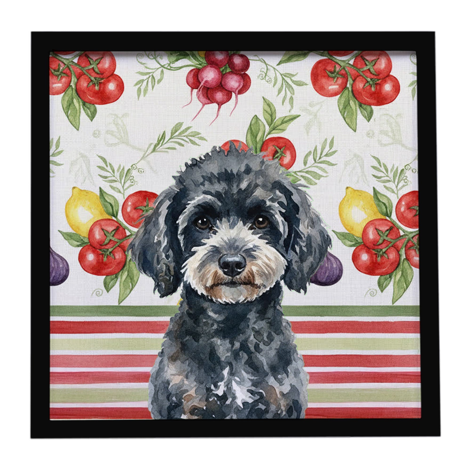 Miniature Black Poodle Vegetables Framed Metal Print
