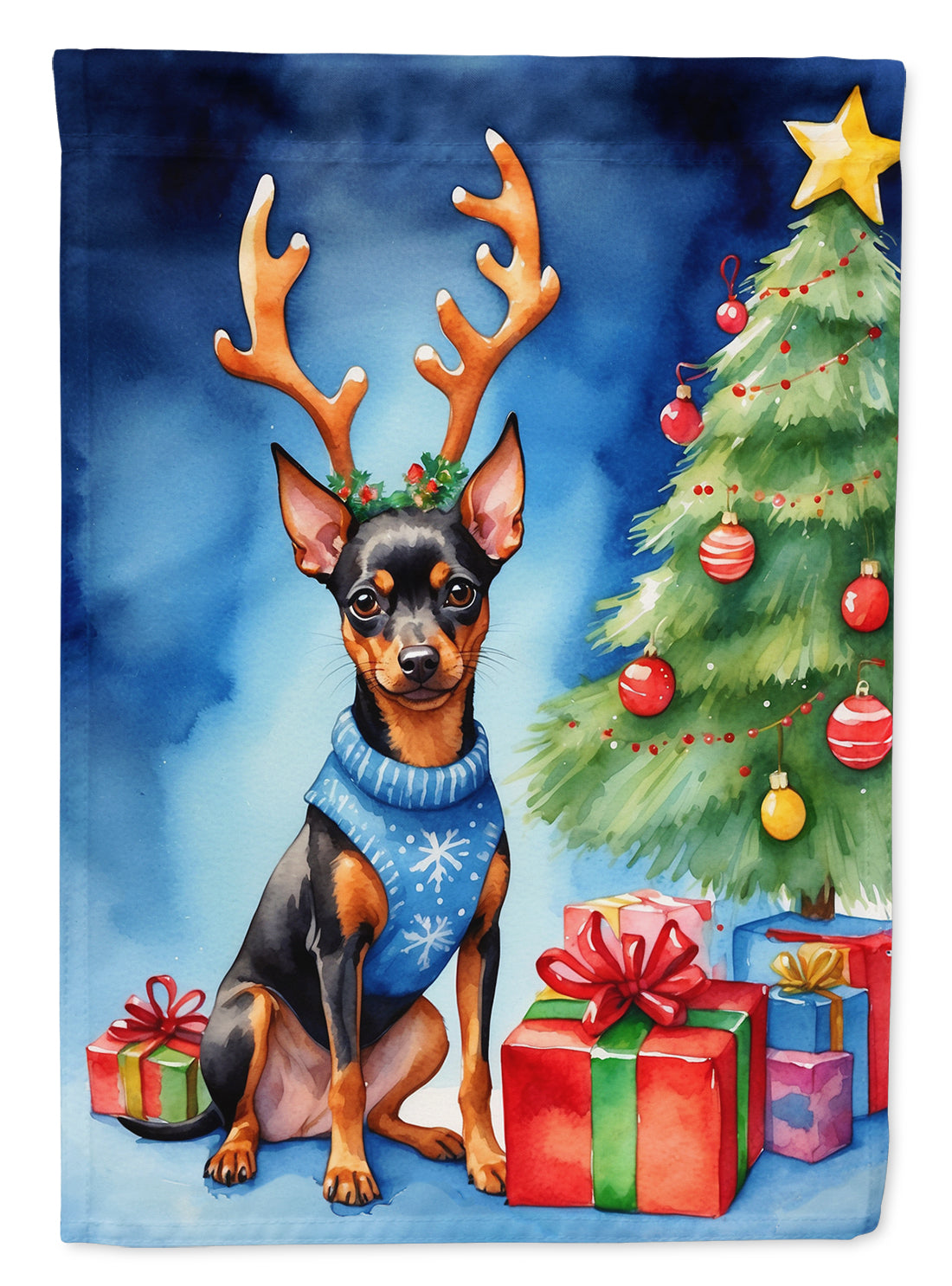 House Flag featuring breed specific Miniature Pinscher artwork. Celebrate Christmas with this Christmas Large Flag. Presenting our Heavy Duty Polyester House Size Decorative Sleeve Pole Flag, a vibrant addition to enhance the aesthetic appeal of your home. This large decorative flag, measuring approximately 28 x 40 inches, offers ample coverage and visibility. Each flag is meticulously sewn and made individually, ensuring a unique piece that may slightly vary in size. It's a sleeve pole flag, designed to fit a standard decorative flag pole effortlessly. Please note that the flag pole and bracket are not included and should be purchased separately. What sets our flag apart is its dual-sided print. The design is mirrored on both sides of the fabric, allowing for uniform visibility regardless of the angle. Printed in full color, our flag showcases vibrant hues that truly stand out. To ensure lasting vibrancy and durability, the dyes are heat-set into the fabric. This ensures your flag remains bright and captivating through various weather conditions. Elevate the look of your home with our Heavy Duty Polyester House Size Decorative Sleeve Pole Flag!