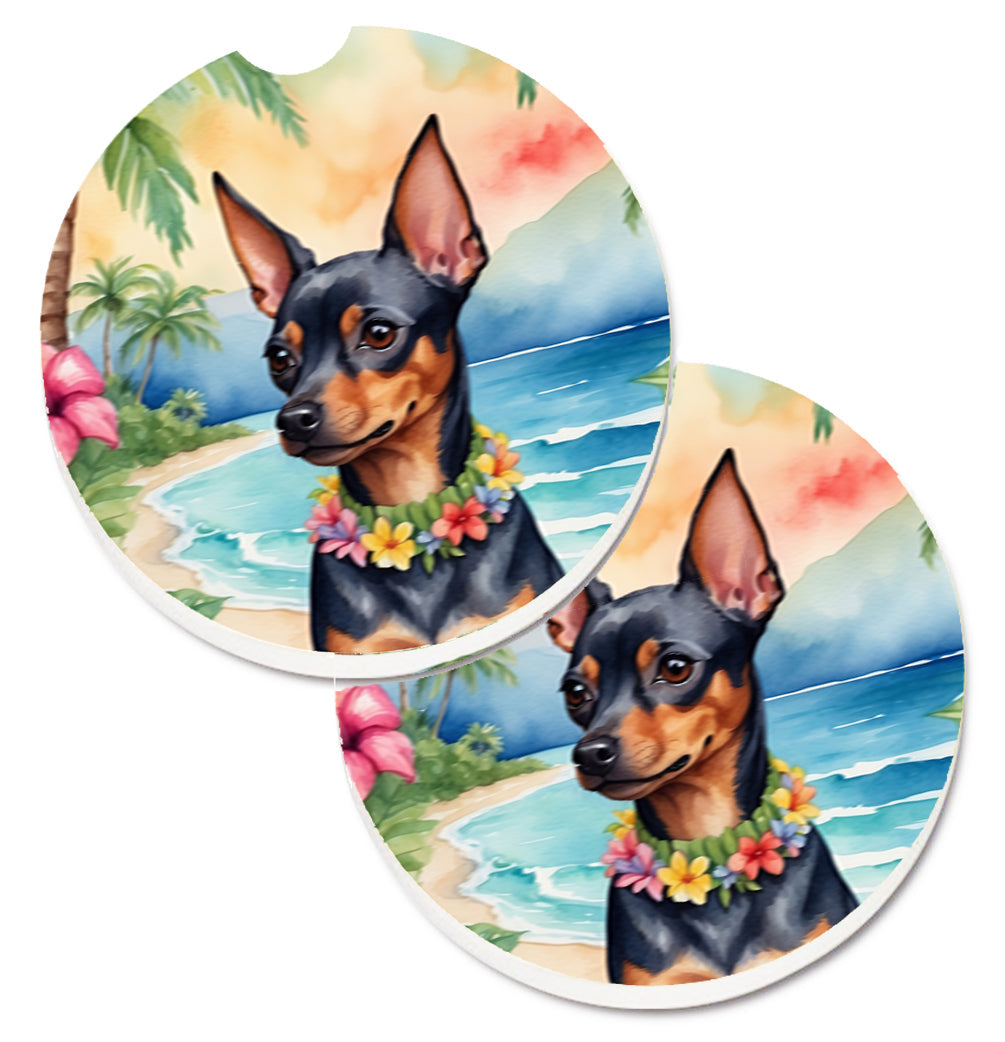 Set of 2 Cup Holder Car Coasters featuring breed specific Miniature Pinscher artwork. Enhance your car interior with our vibrant Set of 2 Sandstone Car Coasters. These stylish coasters add a pop of personality to your vehicle while serving a practical purpose. Each coaster measures 2 1/2 inches in diameter and just over 1/4 inch high, a perfect fit for most car cup holders. Designed with meticulous attention to detail, these coasters exhibit captivating full-color artwork, showcasing your unique taste and style. But they're more than just pretty. Crafted from high-quality absorbent sandstone, these car coasters excel at their job, soaking up condensation from your beverages, protecting your cup holders from those messy drips and spills that can occur as your drink starts to melt. As these coasters are sure to be conversation starters, don't forget to take your beverage with you when leaving your vehicle and leave your eye-catching coaster behind for the next journey. With this set, your car remains clean and stylish, making every ride a delightful experience. Please note, this pack contains two coasters featuring the same design.