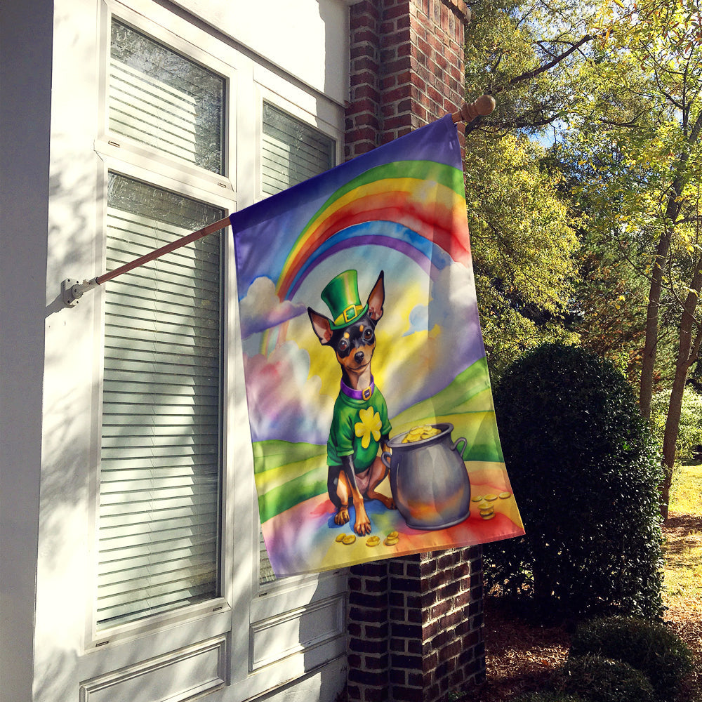 Decorate your space with our St Patrick's Day Miniature Pinscher artwork on a Large Flag. Presenting our Heavy Duty Polyester House Size Decorative Sleeve Pole Flag, a vibrant addition to enhance the aesthetic appeal of your home. This large decorative flag, measuring approximately 28 x 40 inches, offers ample coverage and visibility. Each flag is meticulously sewn and made individually, ensuring a unique piece that may slightly vary in size. It's a sleeve pole flag, designed to fit a standard decorative flag pole effortlessly. Please note that the flag pole and bracket are not included and should be purchased separately. What sets our flag apart is its dual-sided print. The design is mirrored on both sides of the fabric, allowing for uniform visibility regardless of the angle. Printed in full color, our flag showcases vibrant hues that truly stand out. To ensure lasting vibrancy and durability, the dyes are heat-set into the fabric. This ensures your flag remains bright and captivating through various weather conditions. Elevate the look of your home with our Heavy Duty Polyester House Size Decorative Sleeve Pole Flag!
