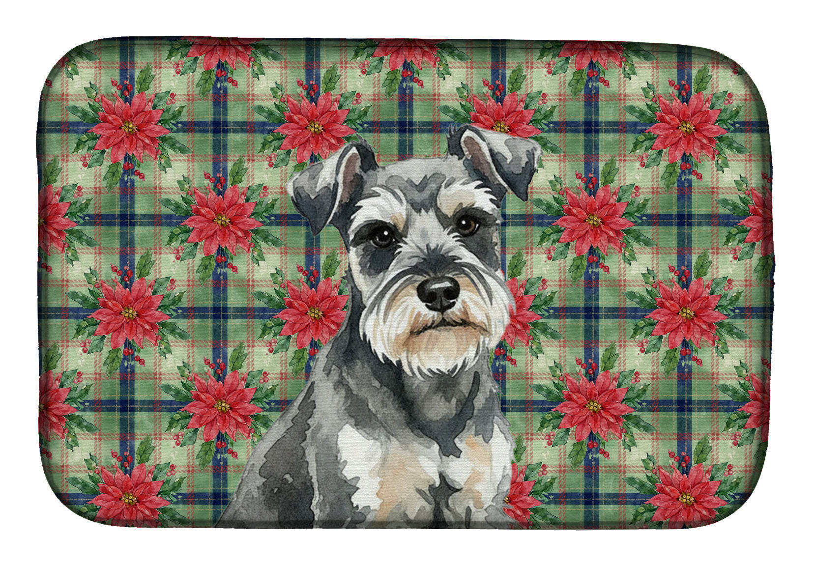 Dish Drying Mat featuring breed specific Miniature Schnauzer artwork. Celebrate Christmas with this Christmas Dish Drying Mat. Say goodbye to messy countertops and soggy dish towels with our innovative dish drying mat. Our high-quality dish drying pad is designed to keep your countertops dry while offering a stylish and efficient solution. Whether you're air drying dishes, glasses, stemware, silverware, pots, pans, bottles, or even fruits and vegetables, our dish mat is the perfect choice. The 14 inches x 22 inches size fits most counters and dish drying racks, and the non-slip design ensures stability. Made with water-absorbent polyester and a polyurethane foam insert, our dish drying mat is not only functional but also durable. It's machine washable and printed in the USA for long-lasting use. The beautiful artwork adds flair to your kitchen decor, making it a perfect housewarming gift or present for any occasion. Upgrade your kitchen experience with our absorbent and versatile dish drying mat.