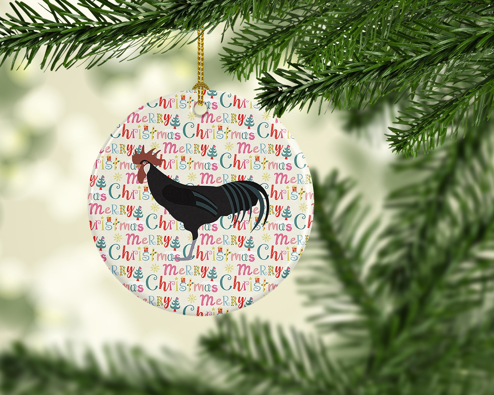 Decorate your space with our Christmas Minorca Ctalalan Chicken artwork on a Ornament. Add a touch of personalized charm to your Christmas tree this holiday season with our Ceramic Ornament. Measuring 2.8125 inches in diameter, this round porcelain ornament beautifully reflects your festive lights, enhancing your holiday decor. The gloss surface sets off the vibrant, full-color artwork contributed by one of our talented artists, bringing a pop of color and joy to your tree. This Ceramic Ornament doesn't stop at being merely decorative. The white back is designed for personalization. Write a heartfelt message, mark a special year, or inscribe a date with a paint pen or a permanent marker to create a treasured memento. Please ensure you allow any personalization to dry thoroughly before handling to maintain the pristine finish. Included with the ornament is a delicate gold cord for easy hanging. Made in the USA, this Ceramic Ornament makes an exceptional gift for a pet sitter, teacher, family member, or anyone you wish to share a little Christmas magic with. With its blend of style, charm, and personal touch, it's a meaningful addition to any Christmas tree.