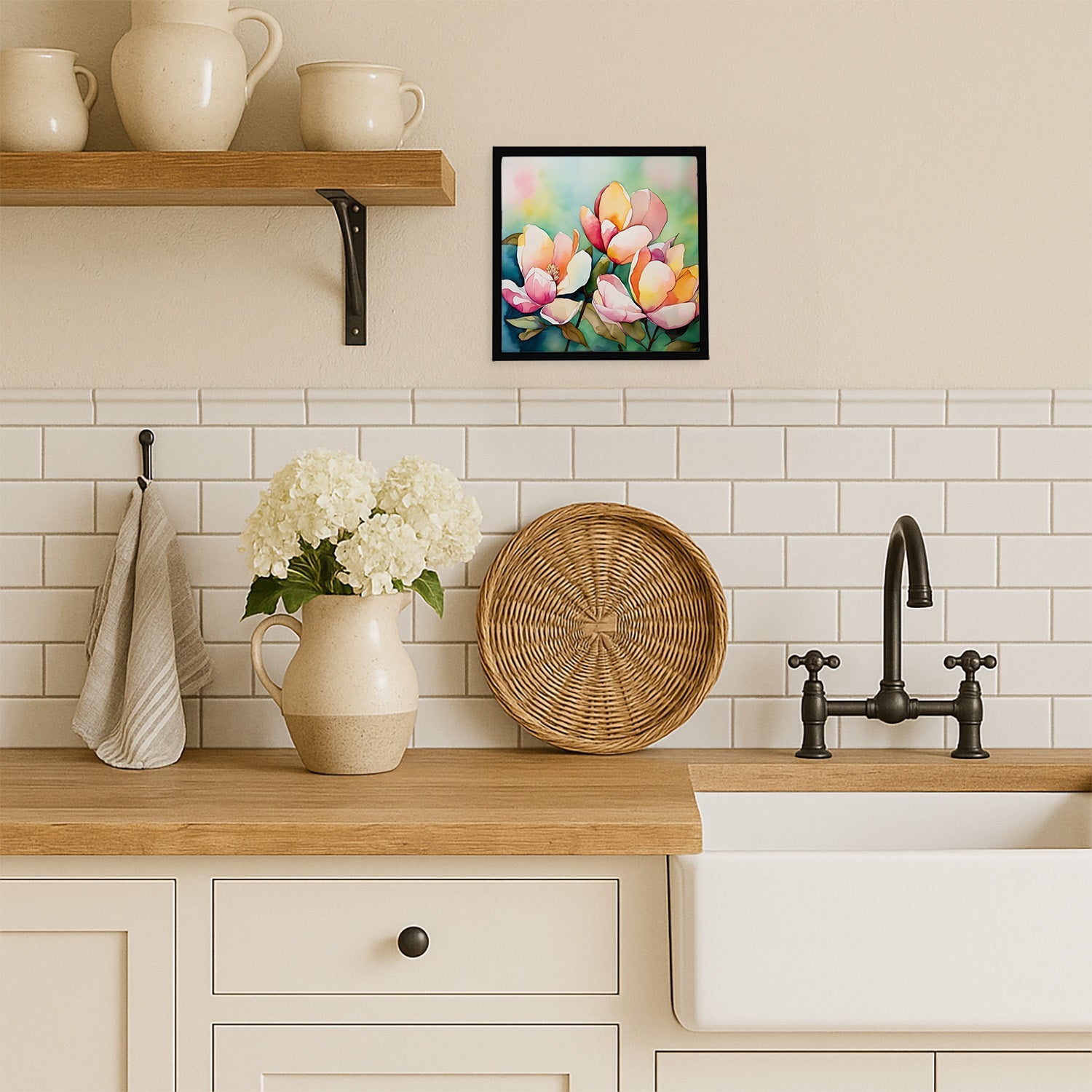 Framed Metal Print featuring breed specific Mississippi Magnolia artwork. Looking for wall art that’s stylish, safe, and made to last? Our 8x8 Framed Metal Prints are designed with modern living in mind. Each piece features original artwork printed on durable aluminum, set in a sleek frame that measures 3/4 inch deep for a clean, contemporary finish. Unlike glass prints, these are lightweight, shatter-free, and family-safe. Perfect for kitchens, bathrooms, or covered porches where traditional décor might not hold up. The built-in sawtooth hanger molded into the back makes it easy to hang right out of the box—just use your own nails or screws. Cleaning is simple too: a quick wipe with a damp cloth and mild soap keeps your artwork looking vibrant. Proudly made in Alabama, every print supports our community of artists while adding personality and charm to your home.