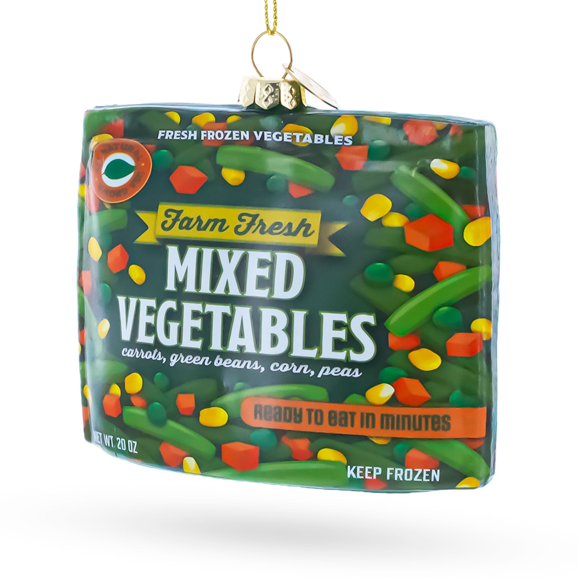 Mixed Vegetables Frozen Box Glass Christmas Ornament