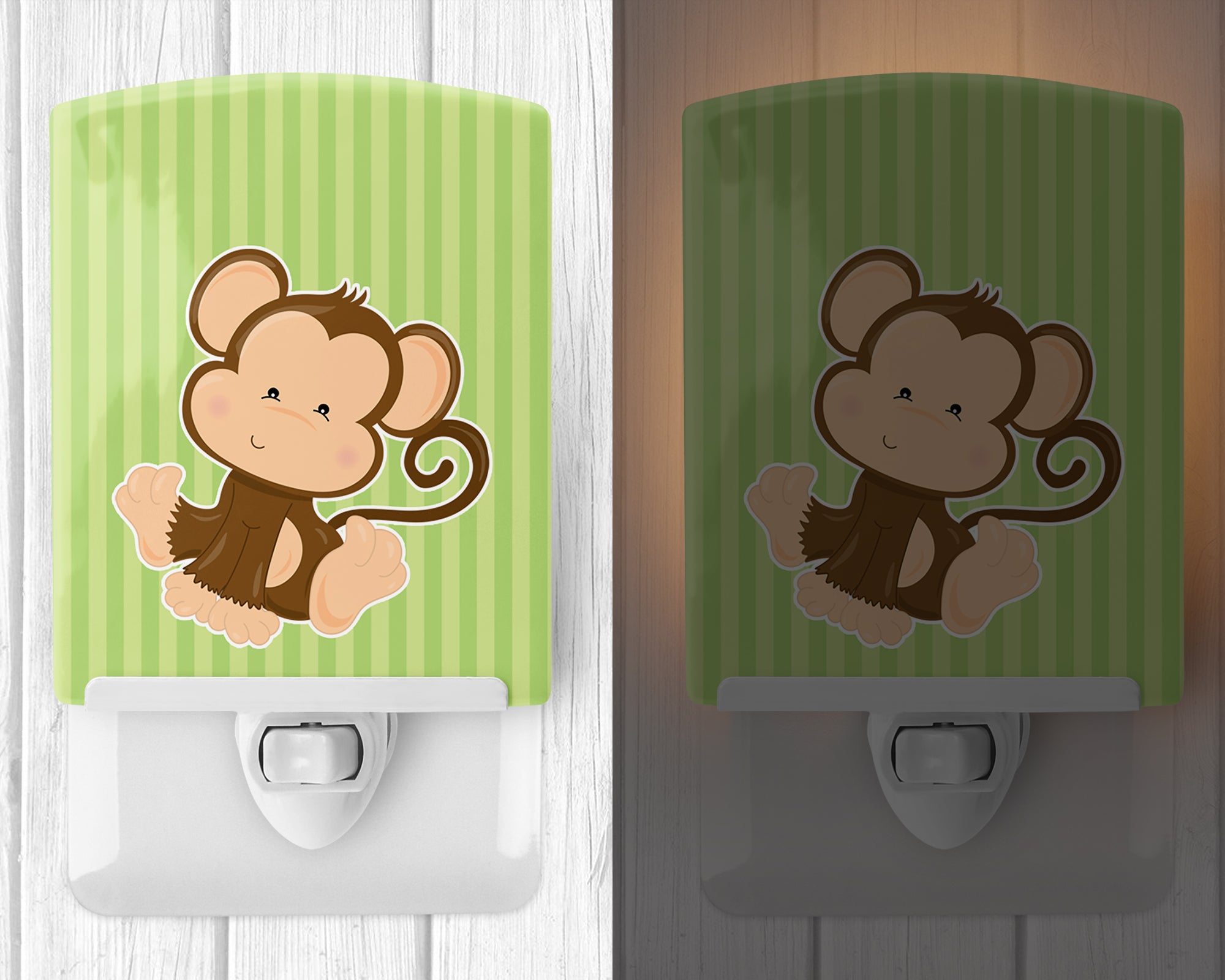 Decorate your space with our Monkey artwork on a Night Light. Introduce a splash of artistic flair and subtle illumination to your space with the Decorative Ceramic Night Light from Caroline's Treasures. Perfect for any room, this night light seamlessly blends functionality with an aesthetic appeal, offering a stylish solution to brighten up dark corners of your home or office. Boasting a six-inch high by four-inch wide ceramic tile at the front, it showcases vivid, full-color artwork from distinguished artists, transforming a simple utility into a vibrant art piece. The artwork is securely encased in a robust metal holder, ensuring durability and longevity. Two screws are provided to firmly affix the tile into the holder. The holder extends three inches deep, housing an included bulb that emits a soft, welcoming glow. This product meets all safety standards, as evidenced by its UL approval. Proudly made in the United States from imported components, this Decorative Ceramic Night Light is not just a functional device; it's a statement piece that enhances the ambiance of your surroundings.