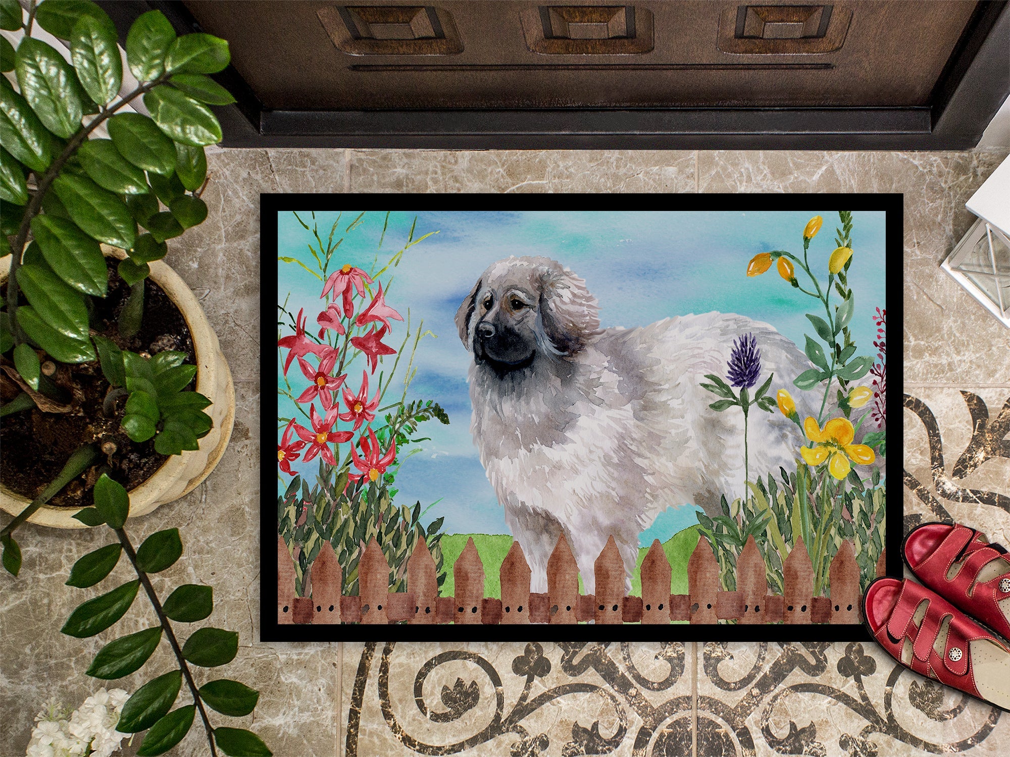 Decorate your space with our Saint Bernard artwork on a Doormat. Bring a bit of Spring into your home with a Spring Doormat. Welcome your guests in style with our Artwork Door Mat, designed to withstand almost any weather condition. This mat, measuring approximately 18 by 27 inches, is held together by durable black binding tape. Its top layer, composed of polyester felt, is dyed with the eye-catching image you see on the mat. A few layers below provide the mat with stability, while its rubber bottom is stamped to help prevent slipping and ensures safety. Our mat works wonderfully as both an indoor or outdoor door mat. For cleaning, simply hose it off with water or use a power washer - no need for any cleaner that produces suds. Avoid scrubbing with a brush, instead, opt for the vacuum on floor setting. Designed manufactured and printed in the USA, this mat is a perfect addition to your porch, outdoor kitchen, entryway, or any indoor space. Its unique design makes it a charming decorative rug that greets your guests and adds a stylish touch to your home decor.