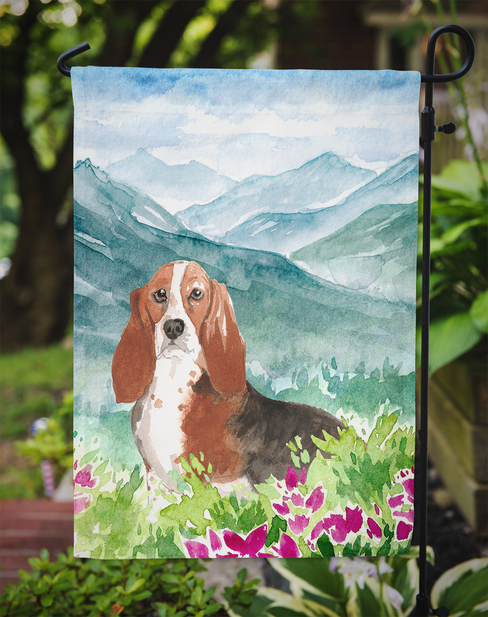 Decorate your space with our Basset Hound artwork on a Garden Flag. Bring a bit of Spring into your home with a Spring Garden Flag. Enhance the beauty of your garden, patio, or yard with Caroline's Treasures Decorative Garden Flag, proudly made in the USA. Crafted from two pieces of thick, double-sided polyester fabric, this 2-ply garden flag is designed to withstand various weather conditions, making it water-resistant and weatherproof. Featuring correctly readable words on both sides, this garden flag offers a delightful visual experience from any angle. With its heavier weight, it stands out among other garden flags, ensuring stability and durability even in wind, rain, and snow. Measuring approximately 11 1/4 inches by 15 1/2 inches, this flag allows you to personalize your outdoor decor. It comes with a 1 1/2-inch sleeve sewn in, allowing easy attachment to any standard garden flag stand or garden size porch hanger (sold separately). Make a statement in your outdoor space with Caroline's Treasures Decorative Garden Flag, a vibrant and high-quality flag that adds color and personality to your surroundings. Proudly made in the USA, it's a symbol of quality craftsmanship and attention to detail.