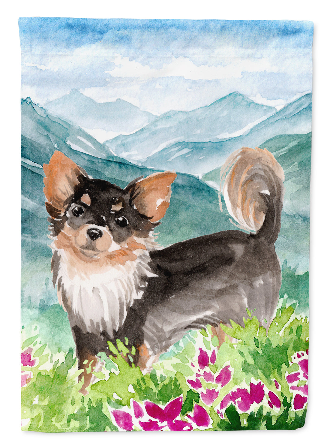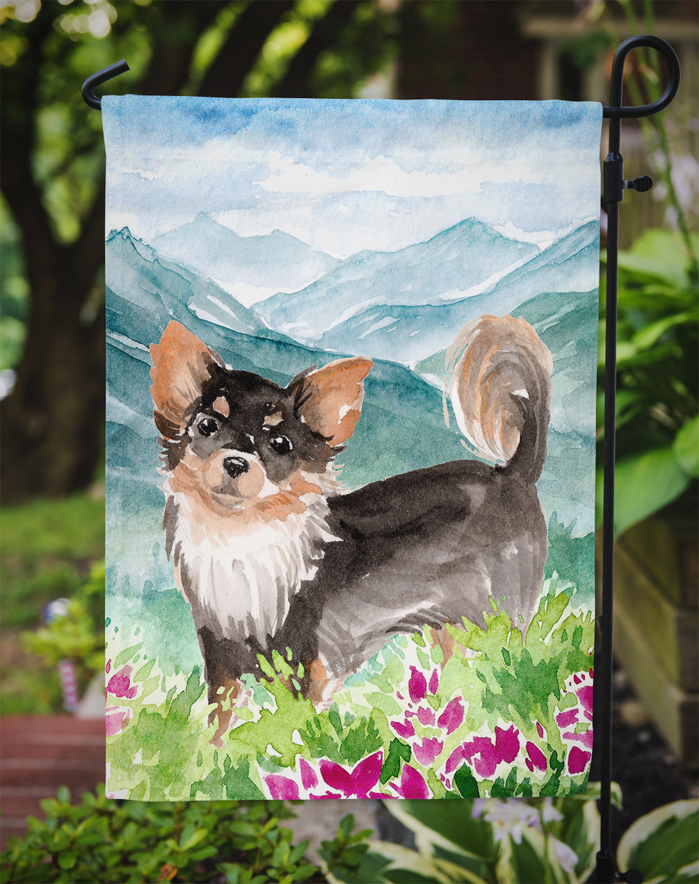 Decorate your space with our Chihuahua artwork on a Garden Flag. Bring a bit of Spring into your home with a Spring Garden Flag. Enhance the beauty of your garden, patio, or yard with Caroline's Treasures Decorative Garden Flag, proudly made in the USA. Crafted from two pieces of thick, double-sided polyester fabric, this 2-ply garden flag is designed to withstand various weather conditions, making it water-resistant and weatherproof. Featuring correctly readable words on both sides, this garden flag offers a delightful visual experience from any angle. With its heavier weight, it stands out among other garden flags, ensuring stability and durability even in wind, rain, and snow. Measuring approximately 11 1/4 inches by 15 1/2 inches, this flag allows you to personalize your outdoor decor. It comes with a 1 1/2-inch sleeve sewn in, allowing easy attachment to any standard garden flag stand or garden size porch hanger (sold separately). Make a statement in your outdoor space with Caroline's Treasures Decorative Garden Flag, a vibrant and high-quality flag that adds color and personality to your surroundings. Proudly made in the USA, it's a symbol of quality craftsmanship and attention to detail.
