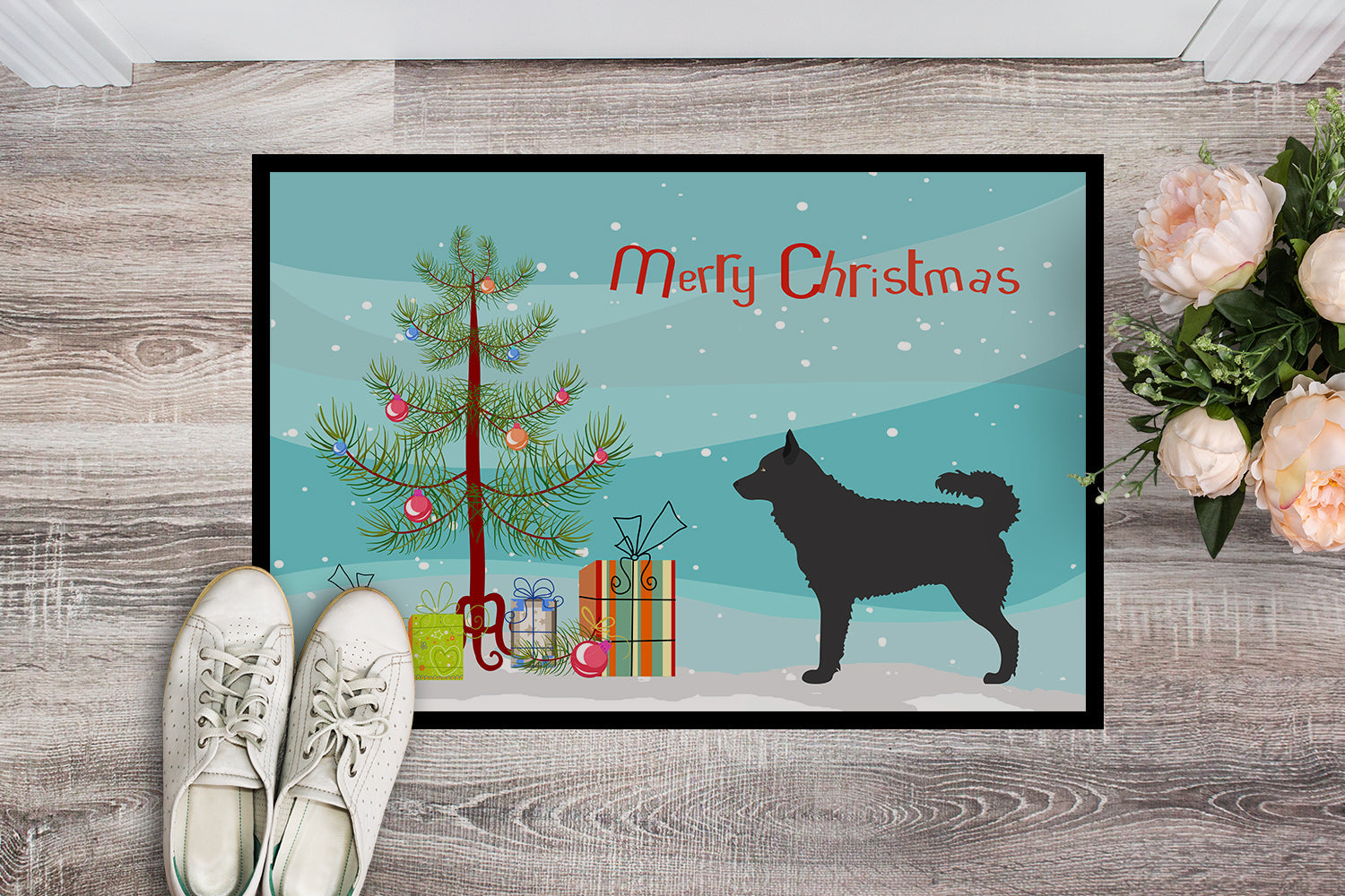 Decorate your space with our Christmas Mudi artwork on a Doormat. Welcome your guests in style with our Artwork Door Mat, designed to withstand almost any weather condition. This mat, measuring approximately 24 by 36 inches, is held together by durable black binding tape. Its top layer, composed of polyester felt, is dyed with the eye-catching image you see on the mat. A few layers below provide the mat with stability, while its rubber bottom is stamped to help prevent slipping and ensures safety. Our mat works wonderfully as both an indoor or outdoor door mat. For cleaning, simply hose it off with water or use a power washer - no need for any cleaner that produces suds. Avoid scrubbing with a brush, instead, opt for the vacuum on floor setting. Designed manufactured and printed in the USA, this mat is a perfect addition to your porch, outdoor kitchen, entryway, or any indoor space. Its unique design makes it a charming decorative rug that greets your guests and adds a stylish touch to your home decor.
