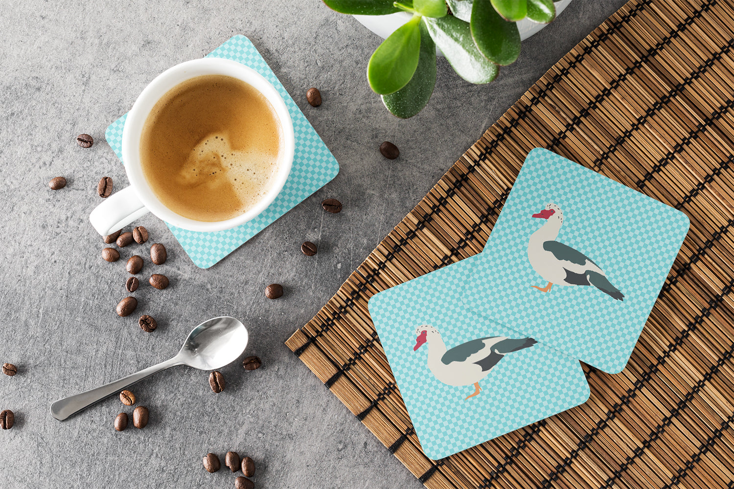 Muscovy Duck Blue Check Foam Coaster  BB8038FC