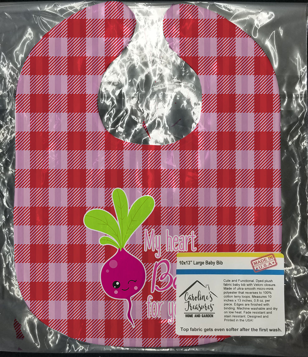 Cute and Functional. Dyed plush fabric baby bib with Velcro closure. Made of ultra-smooth micro-mink polyester that reverses to 100% cotton terry loops. Measures 10 inches x 13 inches, 0.8 oz. per piece. Edges are finished with binding. Machine washable and dry on low heat. Fade resistant and stain resistant. Top fabric gets even softer after the first wash.