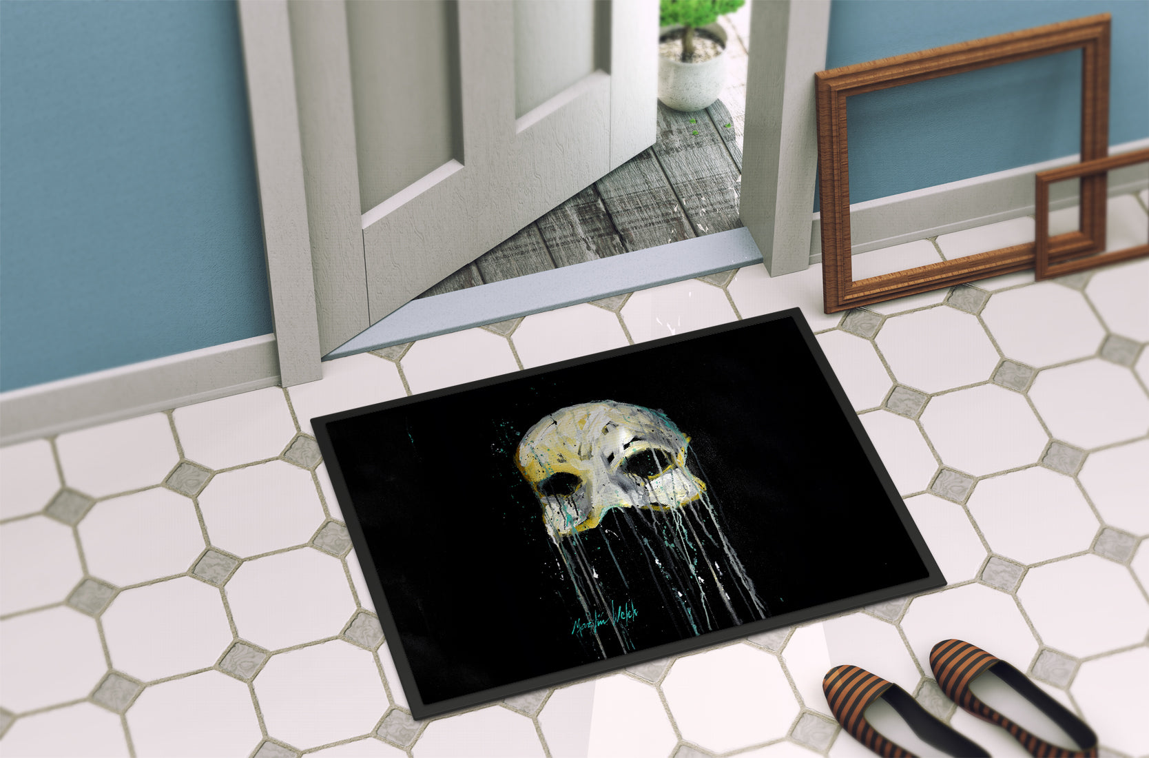 Welcome your guests in style with our Artwork Door Mat, designed to withstand almost any weather condition. This mat, measuring approximately 18 by 27 inches, is held together by durable black binding tape. Its top layer, composed of polyester felt, is dyed with the eye-catching image you see on the mat. A few layers below provide the mat with stability, while its rubber bottom is stamped to help prevent slipping and ensures safety. Our mat works wonderfully as both an indoor or outdoor door mat. For cleaning, simply hose it off with water or use a power washer - no need for any cleaner that produces suds. Avoid scrubbing with a brush, instead, opt for the vacuum on floor setting. Designed manufactured and printed in the USA, this mat is a perfect addition to your porch, outdoor kitchen, entryway, or any indoor space. Its unique design makes it a charming decorative rug that greets your guests and adds a stylish touch to your home decor.