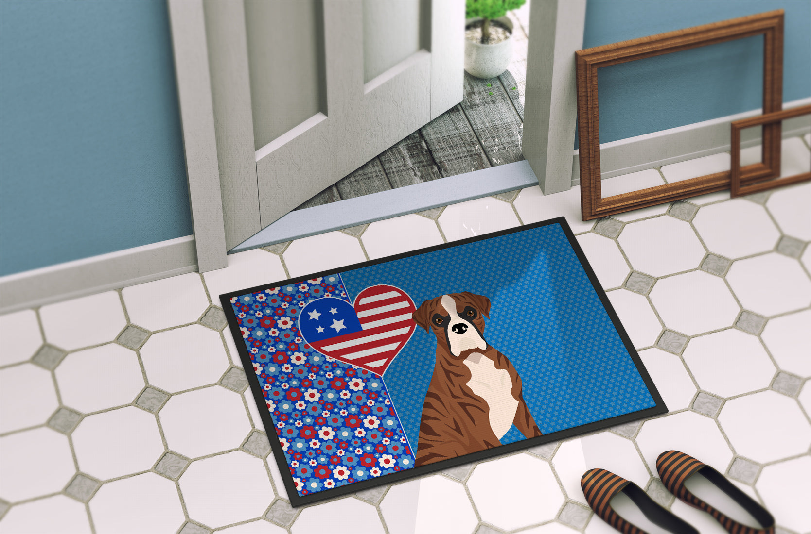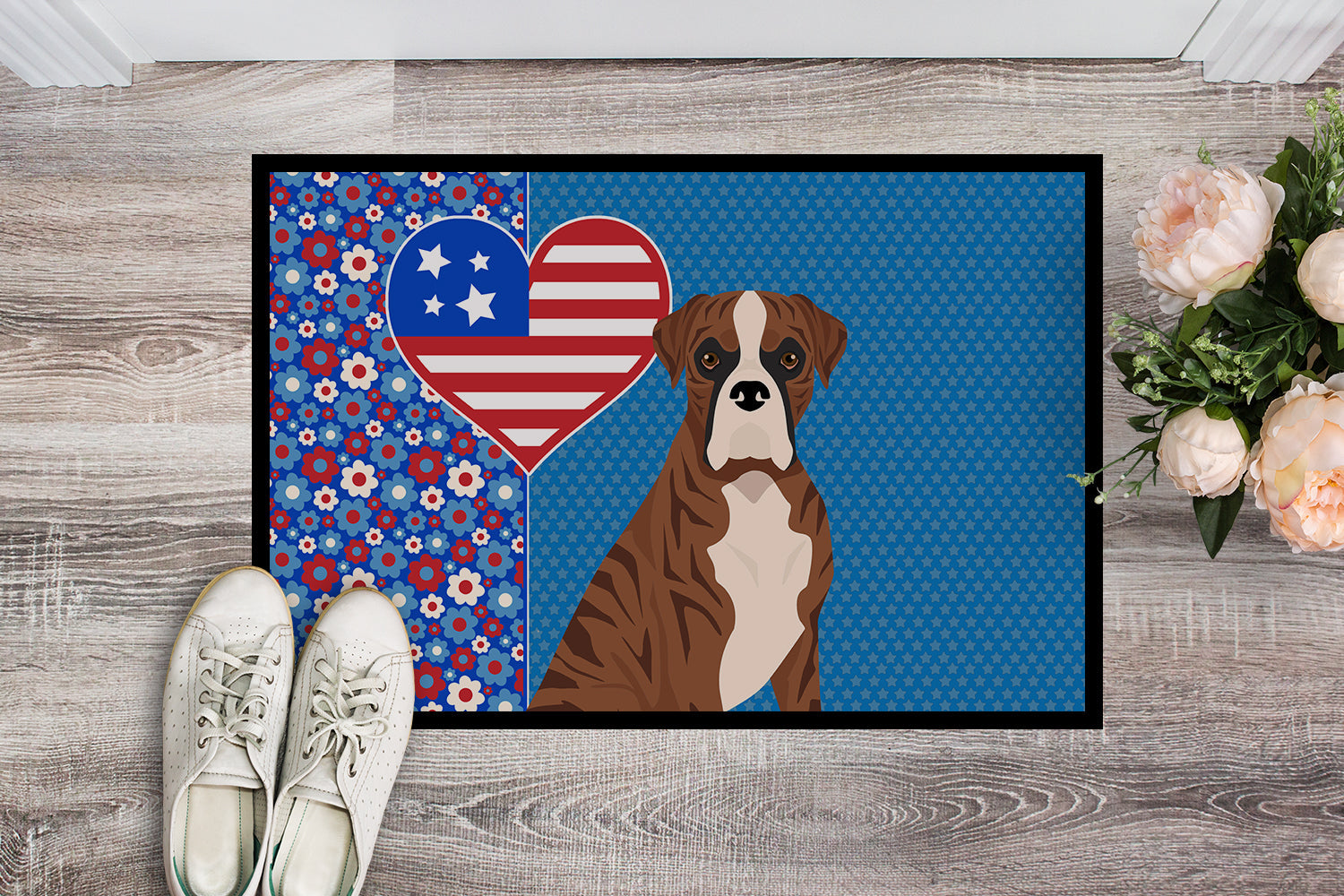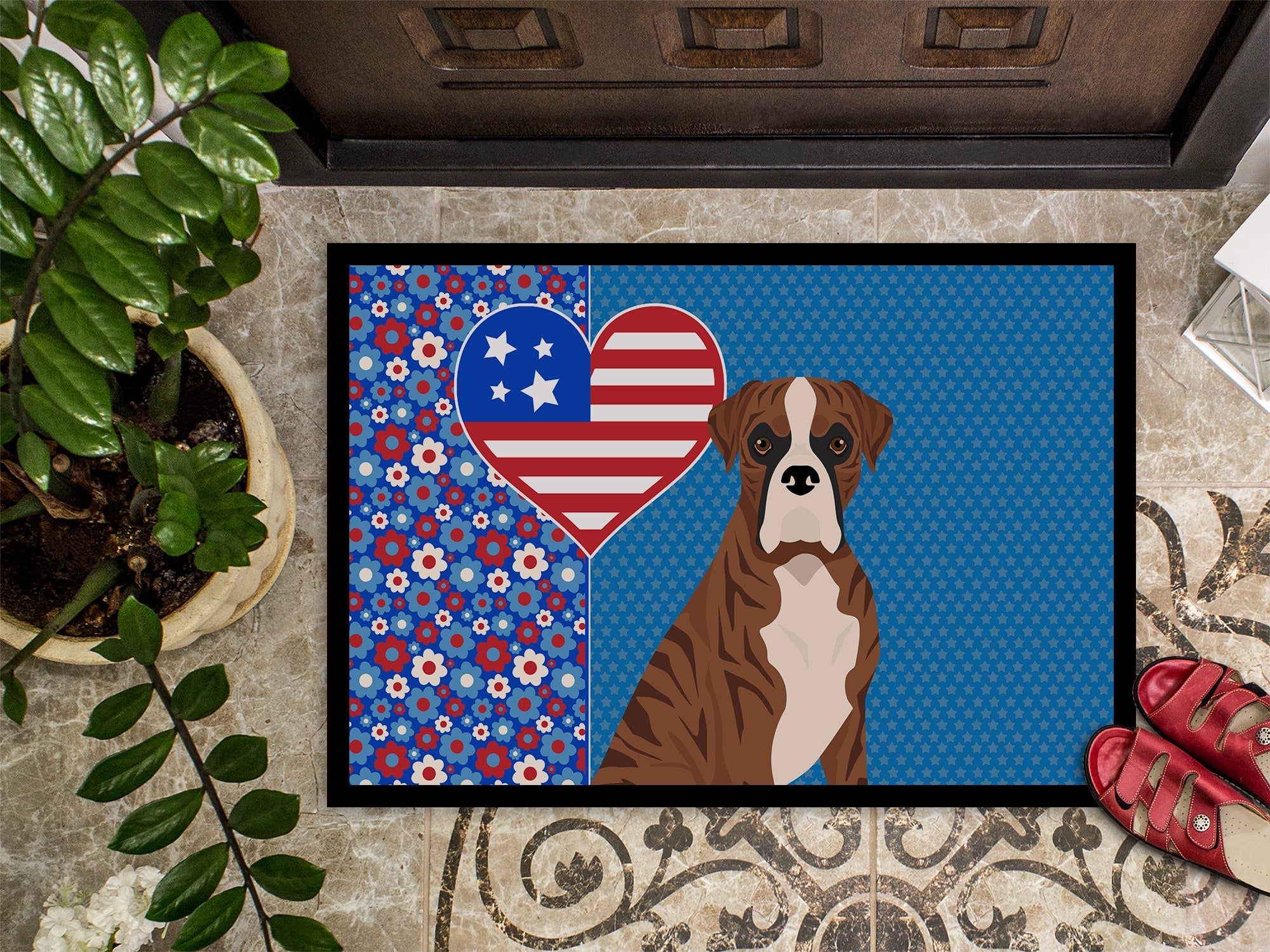 Natural Eared Red Brindle Boxer USA American Doormat - 24x36 Decorative Floor Mat – Indoor/Outdoor Rug with Artistic Flair