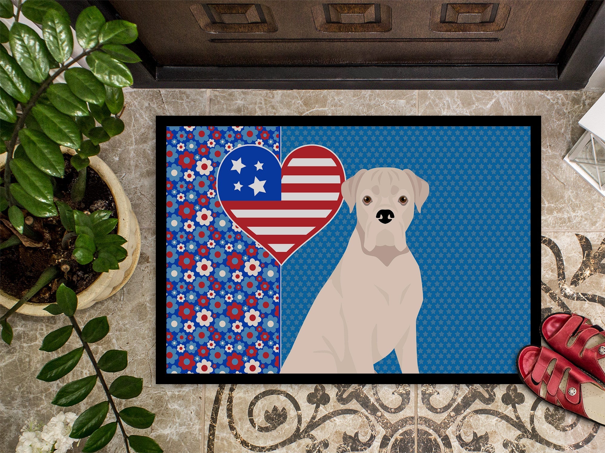 Natural Eared White Boxer USA American Doormat - 24x36 Decorative Floor Mat – Indoor/Outdoor Rug with Artistic Flair