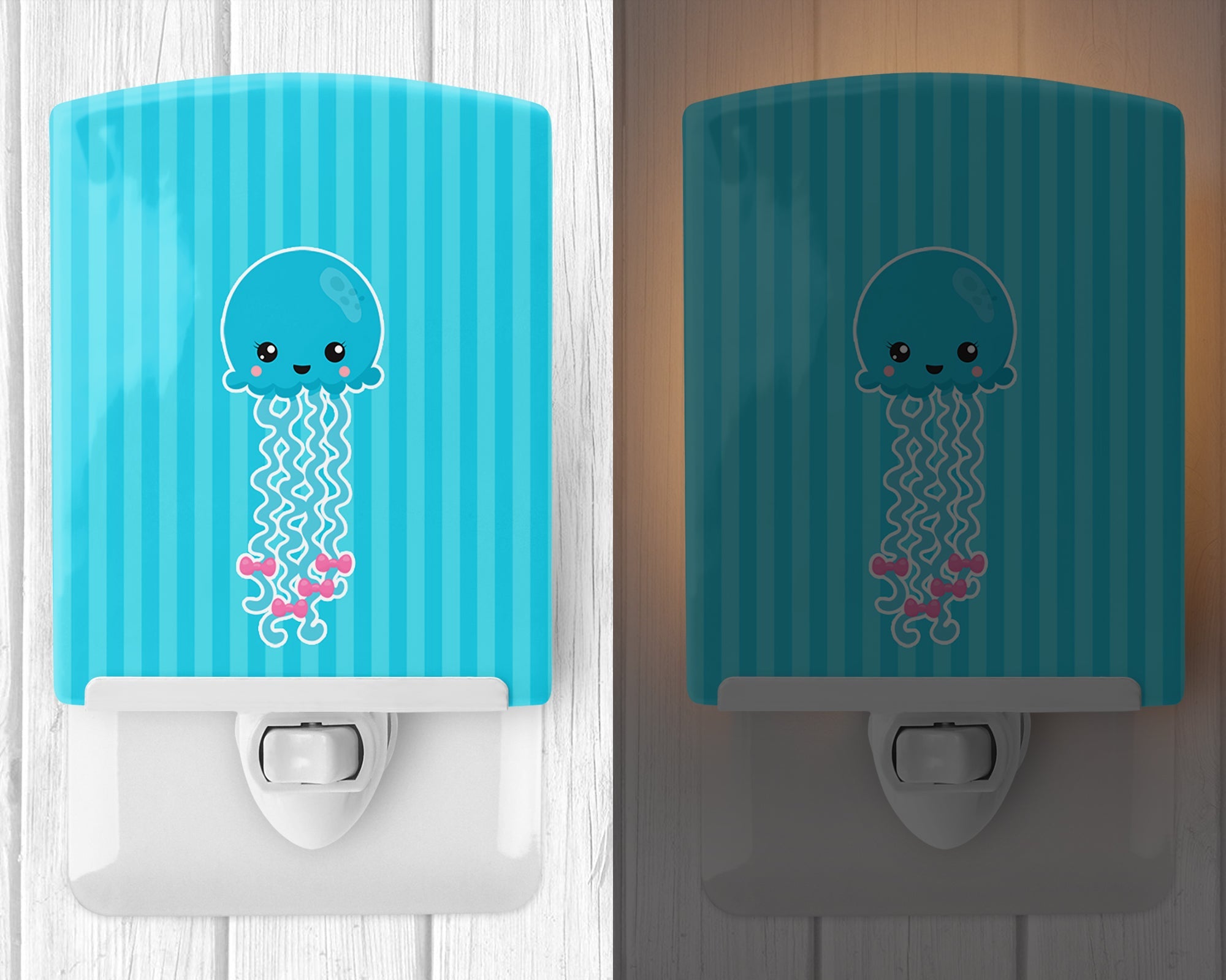 Decorate your space with our Jellyfish artwork on a Night Light. Introduce a splash of artistic flair and subtle illumination to your space with the Decorative Ceramic Night Light from Caroline's Treasures. Perfect for any room, this night light seamlessly blends functionality with an aesthetic appeal, offering a stylish solution to brighten up dark corners of your home or office. Boasting a six-inch high by four-inch wide ceramic tile at the front, it showcases vivid, full-color artwork from distinguished artists, transforming a simple utility into a vibrant art piece. The artwork is securely encased in a robust metal holder, ensuring durability and longevity. Two screws are provided to firmly affix the tile into the holder. The holder extends three inches deep, housing an included bulb that emits a soft, welcoming glow. This product meets all safety standards, as evidenced by its UL approval. Proudly made in the United States from imported components, this Decorative Ceramic Night Light is not just a functional device; it's a statement piece that enhances the ambiance of your surroundings.
