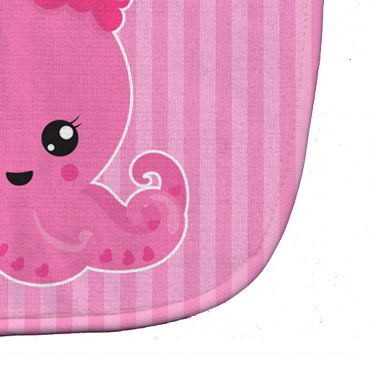 Decorate your space with our Octopus artwork on a Baby Bib. Cute and Functional. Dyed plush fabric baby bib with Velcro closure. Made of ultra-smooth micro-mink polyester that reverses to 100% cotton terry loops. Measures 10 inches x 13 inches, 0.8 oz. per piece. Edges are finished with binding. Machine washable and dry on low heat. Fade resistant and stain resistant. Top fabric gets even softer after the first wash.