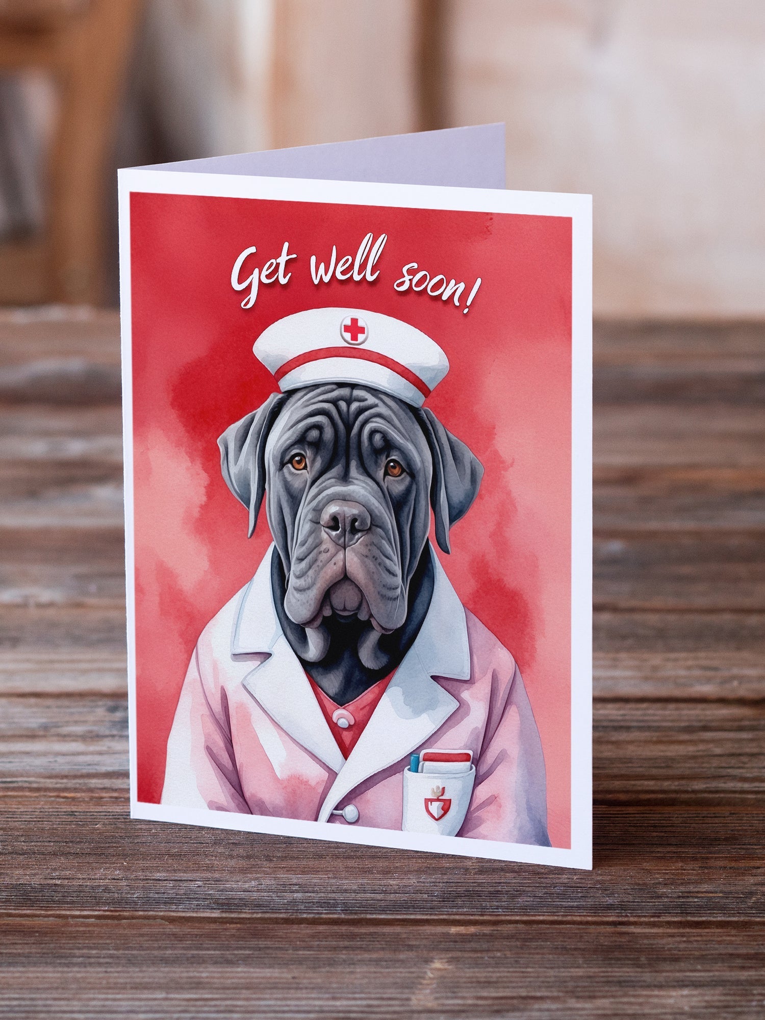 Greeting Cards Pack of 8 featuring breed specific Neapolitan Mastiff artwork. Celebrate Get Well with this Get Well . Celebrate special moments with Caroline's Treasures Printed Greeting Card Pack. This pack includes eight beautifully folded 5x7 cards, accompanied by eight matching white envelopes. With blank interiors, these cards provide ample space for your personalized messages and heartfelt holiday greetings. Each card features captivating full-color artwork, meticulously printed in our facility on high-quality 80 lb cover stock or 216 GSM. The super smooth finish of the white cards enhances the visual impact of the artwork, creating a truly stunning presentation. Designed by our talented in-house artists or licensed artists, the artwork on these cards showcases their creativity and attention to detail. From vibrant illustrations to captivating designs, each card tells its own unique story. Whether it's for birthdays, anniversaries, holidays, or any special occasion, Caroline's Treasures Greeting Card Pack is the perfect way to convey your heartfelt sentiments. Share joy, love, and warm wishes with these exquisite cards and make every moment unforgettable.