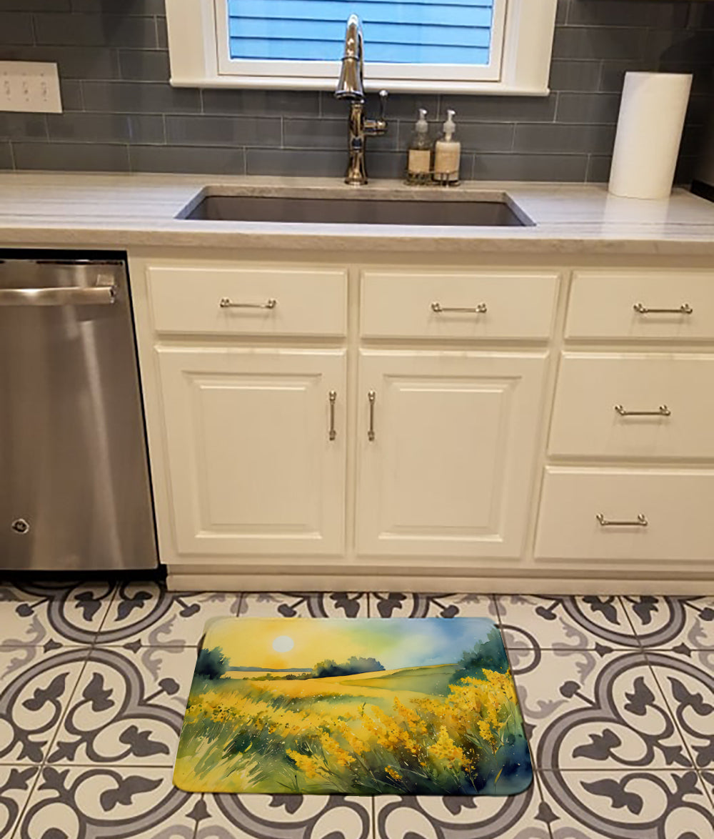 Nebraska Goldenrod in Watercolor Memory Foam Kitchen Mat