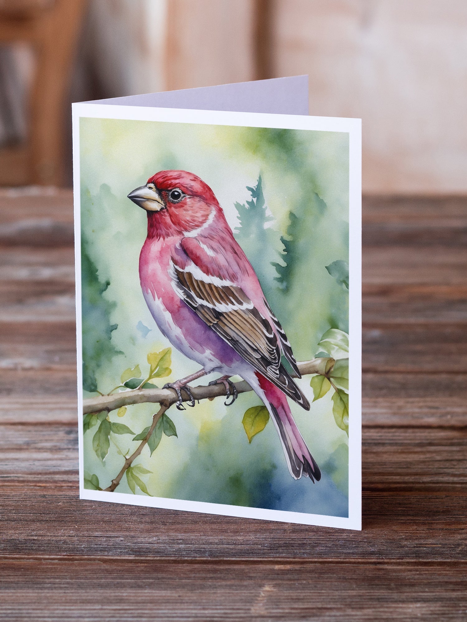 Greeting Cards Pack of 8 featuring breed specific Purple Finch artwork. Celebrate special moments with Caroline's Treasures Printed Greeting Card Pack. This pack includes eight beautifully folded 5x7 cards, accompanied by eight matching white envelopes. With blank interiors, these cards provide ample space for your personalized messages and heartfelt holiday greetings. Each card features captivating full-color artwork, meticulously printed in our facility on high-quality 80 lb cover stock or 216 GSM. The super smooth finish of the white cards enhances the visual impact of the artwork, creating a truly stunning presentation. Designed by our talented in-house artists or licensed artists, the artwork on these cards showcases their creativity and attention to detail. From vibrant illustrations to captivating designs, each card tells its own unique story. Whether it's for birthdays, anniversaries, holidays, or any special occasion, Caroline's Treasures Greeting Card Pack is the perfect way to convey your heartfelt sentiments. Share joy, love, and warm wishes with these exquisite cards and make every moment unforgettable.
