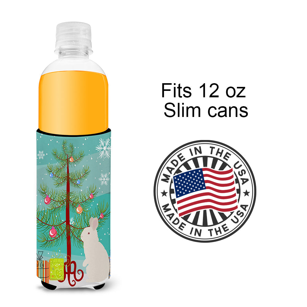 Decorate your space with our Christmas New Zealand White Rabbit artwork on a Slim Can Hugger. Elevate your beverage experience with our Slim Can Huggers, uniquely designed to fit a variety of your favorite 12 oz slim cans. Perfectly suited for Michelob Ultra, Starbucks Refreshers, Heineken Light, Bud Lite Lime, Dry Soda, Coors, Resin, Vitaminwater Energy, and Perrier Cans, our huggers ensure your drink stays refreshingly cool. The feature that sets our can huggers apart is the striking full-color artwork, exclusively created by one of our talented artists. It adds a touch of individuality and style to your drink, making it easier to identify in a crowd. A unique blend of practicality and flair, these huggers are an absolute must-have at any gathering. Our can huggers are not just beautiful but also incredibly durable. The design won't fade or peel off, and they can be safely cleaned in a washing machine. These collapsible beverage insulators are easy to store and transport, making them perfect for all occasions. Enjoy your drinks in style and comfort with our exceptional Slim Can Huggers.