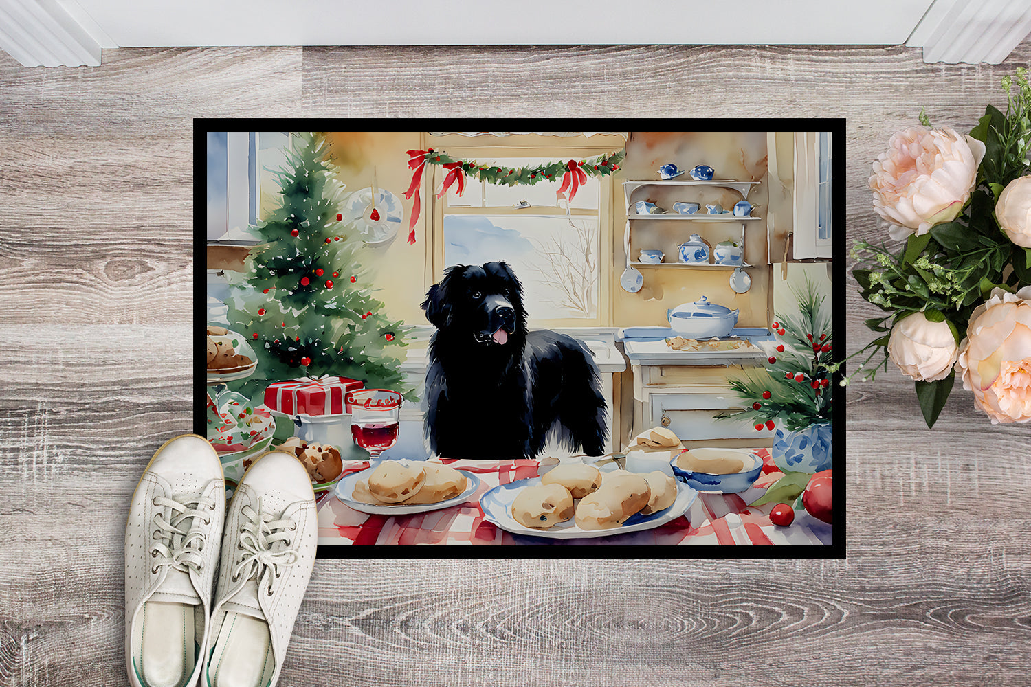 Decorate your space with our Christmas Newfoundland artwork on a Doormat. Welcome your guests in style with our Artwork Door Mat, designed to withstand almost any weather condition. This mat, measuring approximately 24 by 36 inches, is held together by durable black binding tape. Its top layer, composed of polyester felt, is dyed with the eye-catching image you see on the mat. A few layers below provide the mat with stability, while its rubber bottom is stamped to help prevent slipping and ensures safety. Our mat works wonderfully as both an indoor or outdoor door mat. For cleaning, simply hose it off with water or use a power washer - no need for any cleaner that produces suds. Avoid scrubbing with a brush, instead, opt for the vacuum on floor setting. Designed manufactured and printed in the USA, this mat is a perfect addition to your porch, outdoor kitchen, entryway, or any indoor space. Its unique design makes it a charming decorative rug that greets your guests and adds a stylish touch to your home decor.