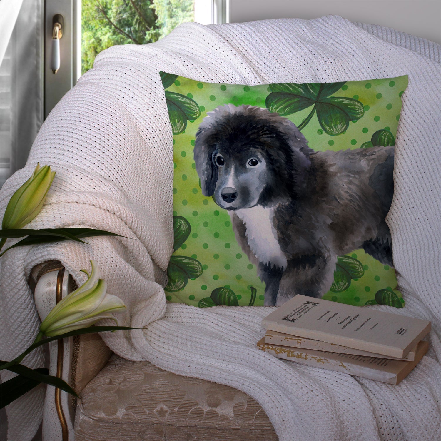 Decorate your space with our St Patrick's Day Newfoundland artwork on a Pillow. Add a touch of vibrancy and comfort to your outdoor seating with Caroline's Treasures Fabric Decorative Pillow. Measuring approximately 14 inches by 14 inches, this outdoor pillow is crafted to elevate the appeal of your patio furniture, infusing it with vivid color and artistic flair. The pillow includes a 100% Polyester Fabric sham filled with a quality pillow form to provide superior comfort. Innovatively made from our brand new material, specifically woven for its water resistance, this pillow is designed for durability. The soft canvas fabric offers versatility in use, fit for your indoor couch or your outdoor patio, porch, or veranda. The fabric is dyed with colorfast dyes built for resilience against weather conditions, ensuring the pillow retains its beauty over time. Constructed by sewing three fabric pieces to create a sham, the polyester insert is then nestled inside to form the pillow, resulting in an overstuffed pillow that maintains its shape. Both the sham and the pillow insert are proudly made in the United States. As the pillows are handcrafted, there may be minor variations in size, further enhancing their unique charm. Experience comfort in style with Caroline's Treasures Fabric Decorative Pillow.