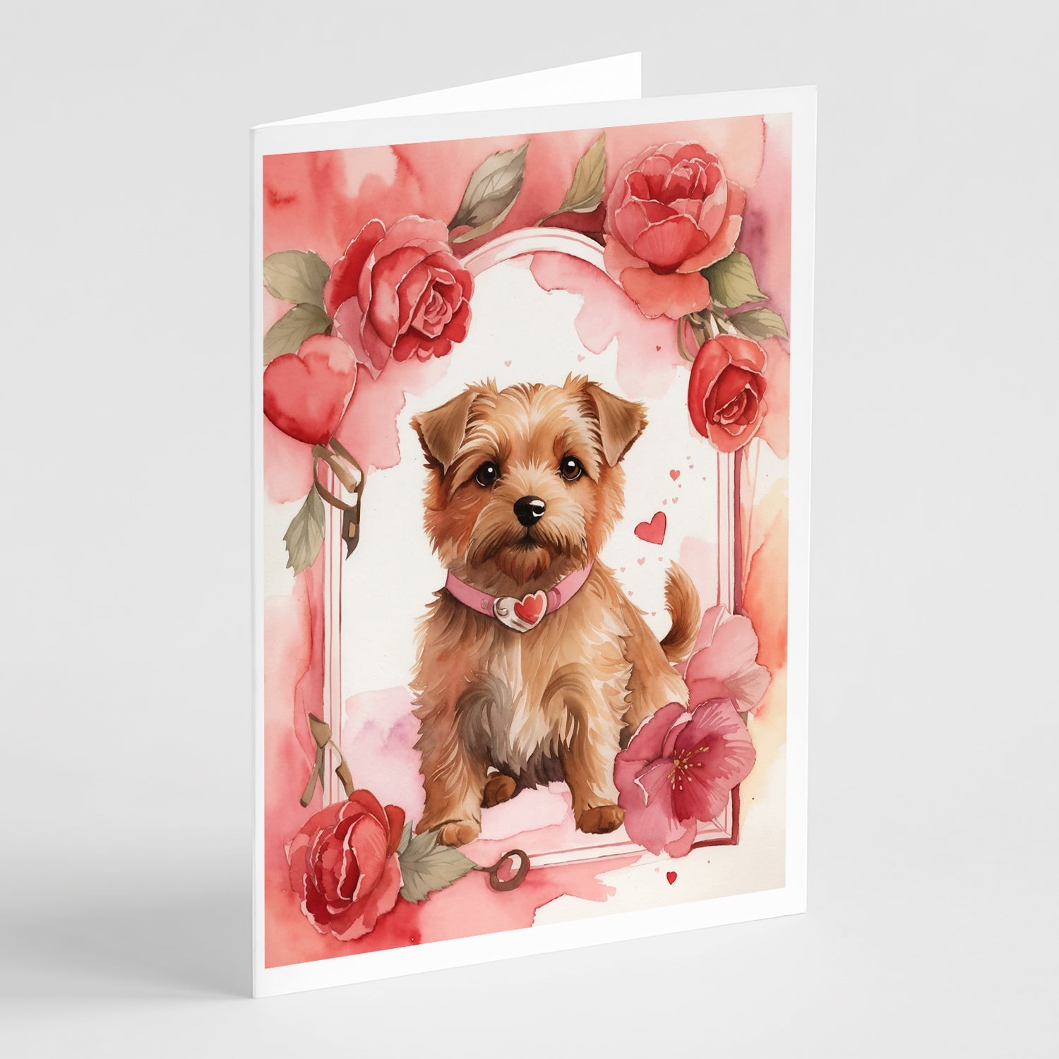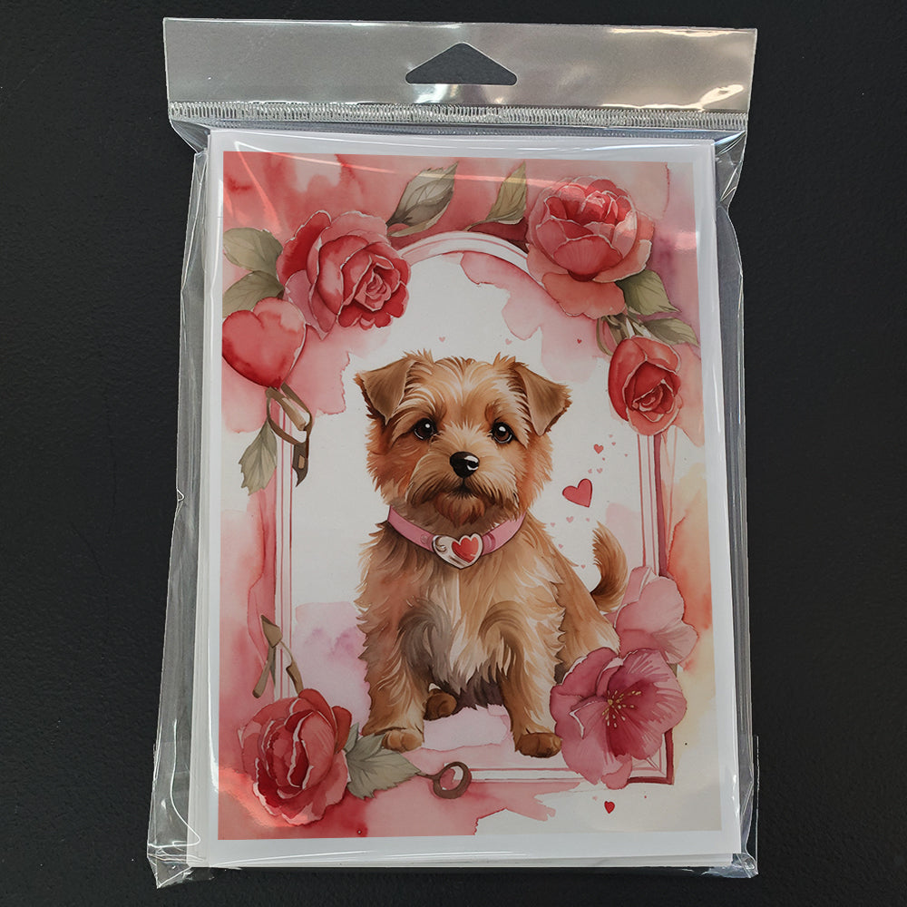 Decorate your space with our Valentine's Day Norfolk Terrier artwork on a . Celebrate special moments with Caroline's Treasures Printed Greeting Card Pack. This pack includes eight beautifully folded 5x7 cards, accompanied by eight matching white envelopes. With blank interiors, these cards provide ample space for your personalized messages and heartfelt holiday greetings. Each card features captivating full-color artwork, meticulously printed in our facility on high-quality 80 lb cover stock or 216 GSM. The super smooth finish of the white cards enhances the visual impact of the artwork, creating a truly stunning presentation. Designed by our talented in-house artists or licensed artists, the artwork on these cards showcases their creativity and attention to detail. From vibrant illustrations to captivating designs, each card tells its own unique story. Whether it's for birthdays, anniversaries, holidays, or any special occasion, Caroline's Treasures Greeting Card Pack is the perfect way to convey your heartfelt sentiments. Share joy, love, and warm wishes with these exquisite cards and make every moment unforgettable.