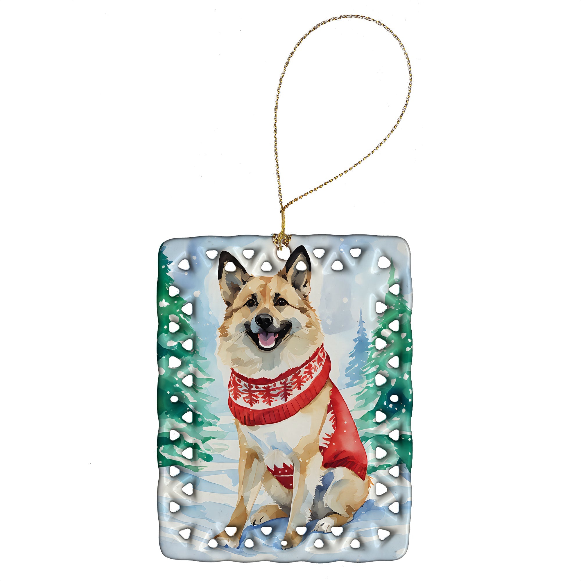 Porcelain Ornament featuring breed specific Norwegian Buhund artwork. Celebrate Christmas with this Christmas Ornament. Add a unique, personal touch to your holiday decor with our Rectangular Lattice Porcelain Ornament. Perfect for creating cherished memories, this high-quality ornament shines under festive lights, reflecting warmth and joy throughout your Christmas tree. Crafted with a glossy finish, it showcases vibrant, full-color artwork contributed by our talented artists, ensuring your tree is adorned with a burst of color and holiday spirit. What sets this Porcelain Ornament apart is its customizable white back. Use a paint pen or permanent marker to write a heartfelt message, commemorate a special year, or mark an unforgettable date, turning this ornament into a keepsake that will be treasured for years to come. For best results, allow any personalization to dry thoroughly before handling. Each ornament comes complete with a delicate gold cord, making it easy to hang and display. Proudly made in the USA, this ornament measures 3.375 x 2.625 inches and is a thoughtful gift for pet sitters, teachers, family members, or anyone who would appreciate a little extra holiday magic. Bring style, charm, and a touch of personal meaning to your Christmas tree with this beautifully designed ornament..