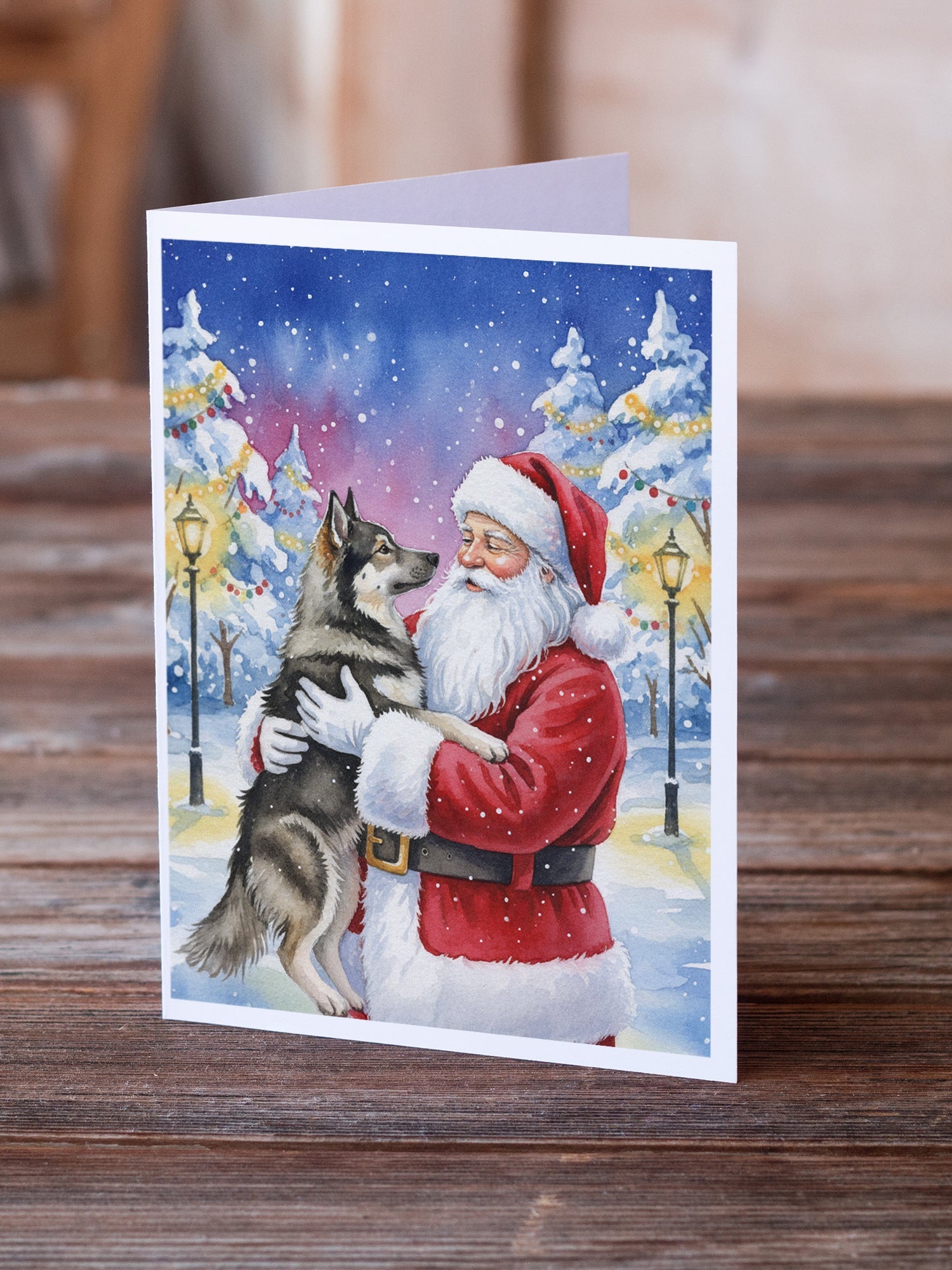 Norwegian Elkhound with Santa Claus Greeting Cards Pack of 8