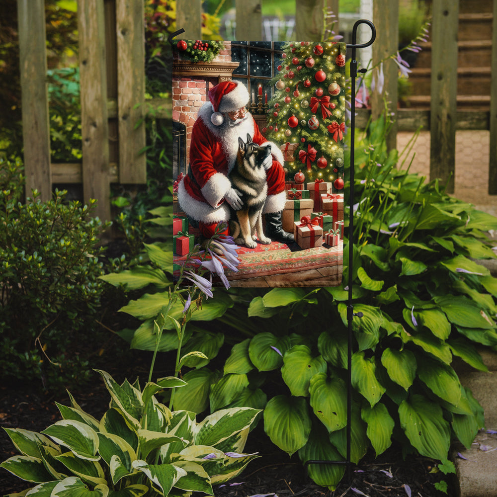 Bring a festive, canine-inspired charm to your garden with this breed specific dog and Santa Claus Garden Flag. Featuring a heartwarming ‘Moments with Santa Claus’ scene, this durable, weather-resistant flag is perfect for any dog lover’s holiday decor. Whether for personal use or as a thoughtful gift, this festive yard flag adds a cozy, seasonal touch to any outdoor space. Ideal for pet-friendly homes, it captures the holiday spirit while showcasing your love for dogs.Decorate your space with our Christmas Norwegian Elkhound artwork on a Garden Flag. Enhance the beauty of your garden, patio, or yard with Caroline's Treasures Decorative Garden Flag, proudly made in the USA. Crafted from two pieces of thick, double-sided polyester fabric, this 2-ply garden flag is designed to withstand various weather conditions, making it water-resistant and weatherproof. Featuring correctly readable words on both sides, this garden flag offers a delightful visual experience from any angle. With its heavier weight, it stands out among other garden flags, ensuring stability and durability even in wind, rain, and snow. Measuring approximately 11 1/4 inches by 15 1/2 inches, this flag allows you to personalize your outdoor decor. It comes with a 1 1/2-inch sleeve sewn in, allowing easy attachment to any standard garden flag stand or garden size porch hanger (sold separately). Make a statement in your outdoor space with Caroline's Treasures Decorative Garden Flag, a vibrant and high-quality flag that adds color and personality to your surroundings. Proudly made in the USA, it's a symbol of quality craftsmanship and attention to detail.