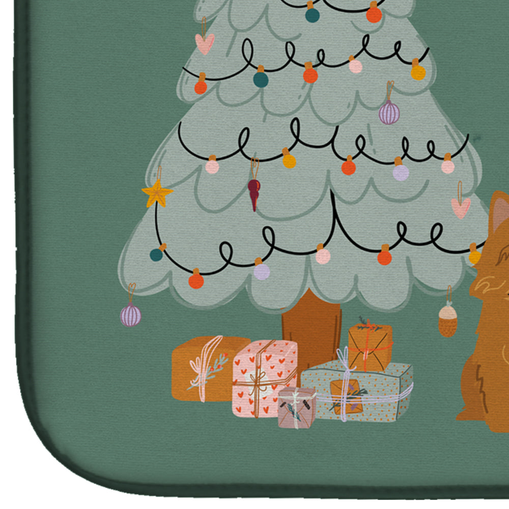 Decorate your space with our Christmas Norwich Terrier artwork on a Dish Drying Mat. Say goodbye to messy countertops and soggy dish towels with our innovative dish drying mat. Our high-quality dish drying pad is designed to keep your countertops dry while offering a stylish and efficient solution. Whether you're air drying dishes, glasses, stemware, silverware, pots, pans, bottles, or even fruits and vegetables, our dish mat is the perfect choice. The 14 inches x 22 inches size fits most counters and dish drying racks, and the non-slip design ensures stability. Made with water-absorbent polyester and a polyurethane foam insert, our dish drying mat is not only functional but also durable. It's machine washable and printed in the USA for long-lasting use. The beautiful artwork adds flair to your kitchen decor, making it a perfect housewarming gift or present for any occasion. Upgrade your kitchen experience with our absorbent and versatile dish drying mat.