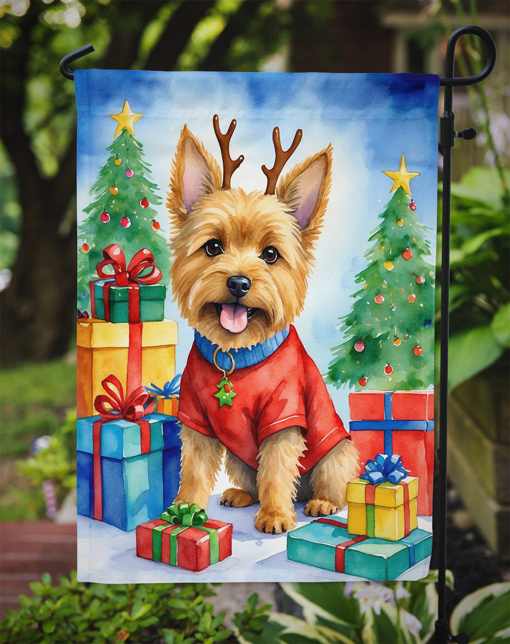 Garden Flag featuring breed specific Norwich Terrier artwork. Celebrate Christmas with this Christmas Garden Flag. Enhance the beauty of your garden, patio, or yard with Caroline's Treasures Decorative Garden Flag, proudly made in the USA. Crafted from two pieces of thick, double-sided polyester fabric, this 2-ply garden flag is designed to withstand various weather conditions, making it water-resistant and weatherproof. Featuring correctly readable words on both sides, this garden flag offers a delightful visual experience from any angle. With its heavier weight, it stands out among other garden flags, ensuring stability and durability even in wind, rain, and snow. Measuring approximately 11 1/4 inches by 15 1/2 inches, this flag allows you to personalize your outdoor decor. It comes with a 1 1/2-inch sleeve sewn in, allowing easy attachment to any standard garden flag stand or garden size porch hanger (sold separately). Make a statement in your outdoor space with Caroline's Treasures Decorative Garden Flag, a vibrant and high-quality flag that adds color and personality to your surroundings. Proudly made in the USA, it's a symbol of quality craftsmanship and attention to detail.