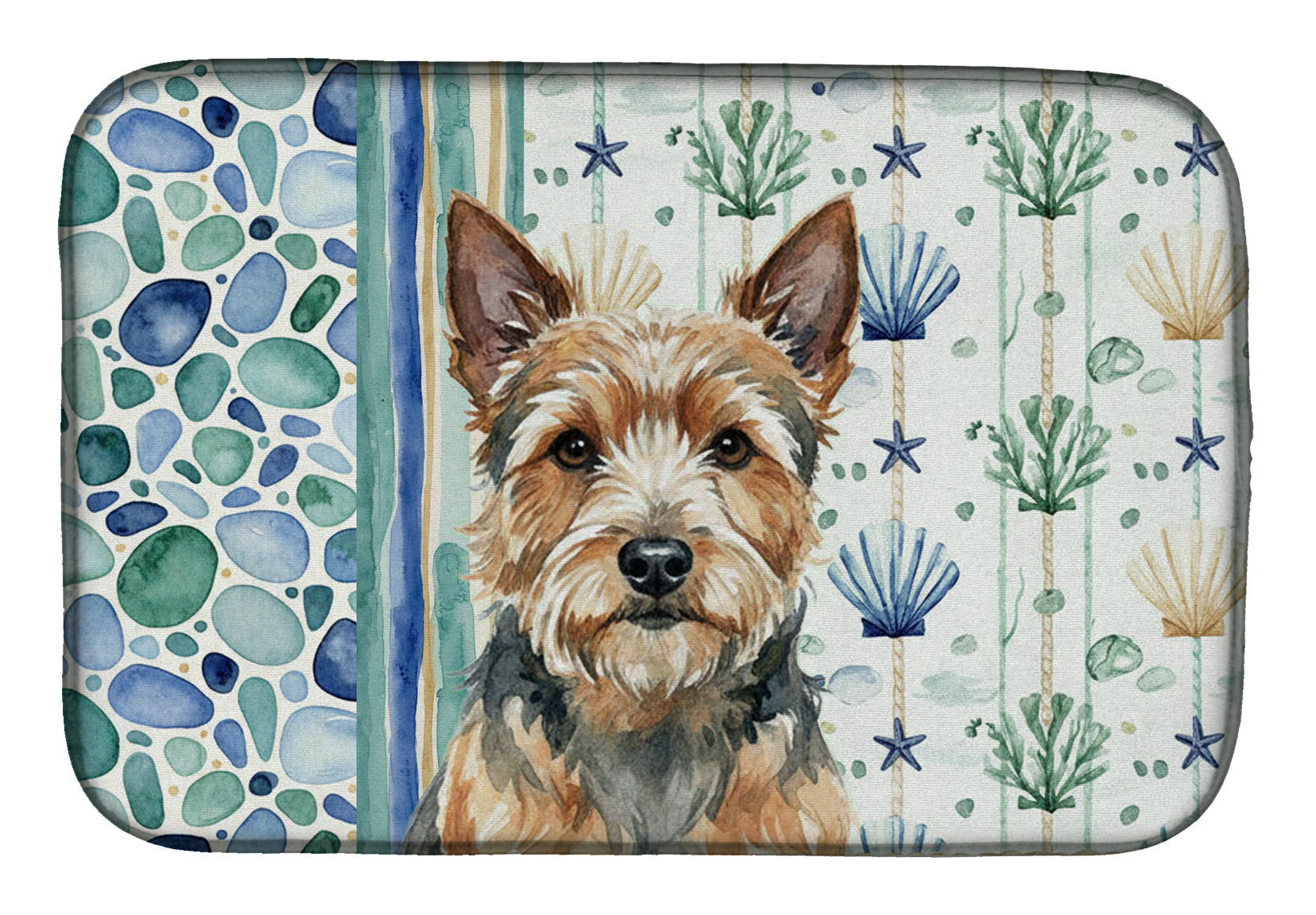 Shown here is the Norwich Terrier Coastal Sea Glass Dish Drying Mat from Caroline's Treasures featuring artwork of a Norwich Terrier in a Everyday design. The detailed illustration and vibrant colors make it a standout accent that celebrates both seasonal style and love for the subject. This image features a calming coastal watercolor pattern with soft seashells, seaweed, starfish, and pebble-inspired accents arranged in a repeating design. The soothing palette of blues, greens, and sandy neutrals creates a relaxed, beach-inspired look that adds a fresh and tranquil feel to any space. Everyday décor celebrates personal style and the small moments that make a house feel like home. Thoughtful designs add warmth and personality that can be enjoyed year-round. Say goodbye to messy countertops and soggy dish towels with our innovative dish drying mat. Our high-quality dish drying pad is designed to keep your countertops dry while offering a stylish and efficient solution. Whether you're air drying dishes, glasses, stemware, silverware, pots, pans, bottles, or even fruits and vegetables, our dish mat is the perfect choice. The 14 inches x 21 inches size fits most counters and dish drying racks, and the non-slip design ensures stability. Made with water-absorbent polyester and a polyurethane foam insert, our dish drying mat is not only functional but also durable. It's machine washable and printed in the USA for long-lasting use. The beautiful artwork adds flair to your kitchen decor, making it a perfect housewarming gift or present for any occasion. Upgrade your kitchen experience with our absorbent and versatile dish drying mat. Perfect for: Kitchen counters and sinks, everyday dish drying and countertop protection, Dogs-themed homes, or year-round use for Norwich Terrier lovers. Norwich Terriers are small but fearless dogs known for their spirited personality. This terrier breed is valued for its loyalty, intelligence, and affectionate disposition. Makes a heartfelt gift for: Norwich Terrier owners, Dogs lovers, Everyday gifts, pet parents, friends who adore their Norwich Terrier, or anyone celebrating Dogs.