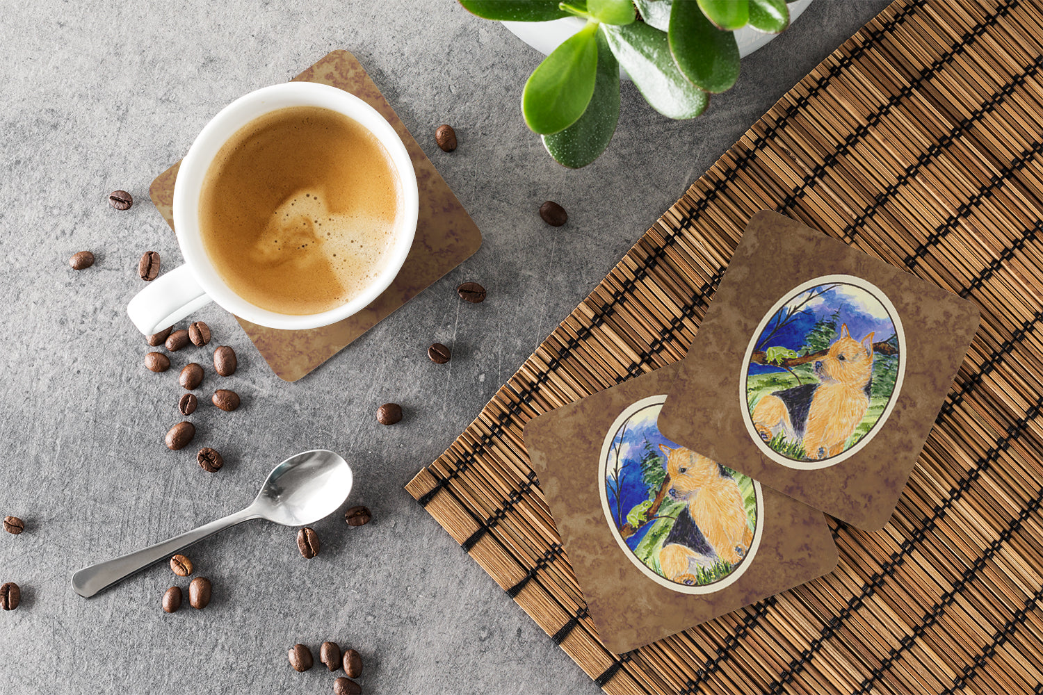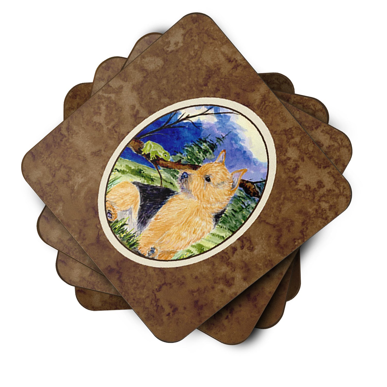 Decorate your space with our Norwich Terrier artwork on a Coaster set. Presenting our Set of 4 Foam Coasters, a stylish and practical addition to your table setting. Each square coaster, measuring 3 1/2 inches by 3 1/2 inches, is perfectly sized to accommodate various drinkware, from coffee mugs to tumblers. These coasters stand out with their full-color artwork, permanently dyed onto the material for a vibrant and fade-resistant finish. They're not just functional, they're a fashionable statement, adding a touch of flair to any gathering or event. Our foam coasters serve a dual purpose - they protect your table from water stains and are perfect for both hot and cold drinks. The material used is similar to that of our high-quality mouse pads, ensuring durability and heat resistance. These coasters are easy to maintain - simply wash them in the top of your dishwasher and lay flat to dry. The design won't come off, ensuring they retain their vivid colors for years. Pair them with one of our insulated coolers or huggers for a cohesive, thoughtful gift set. Enhance your beverage experience with our Set of 4 Foam Coasters.
