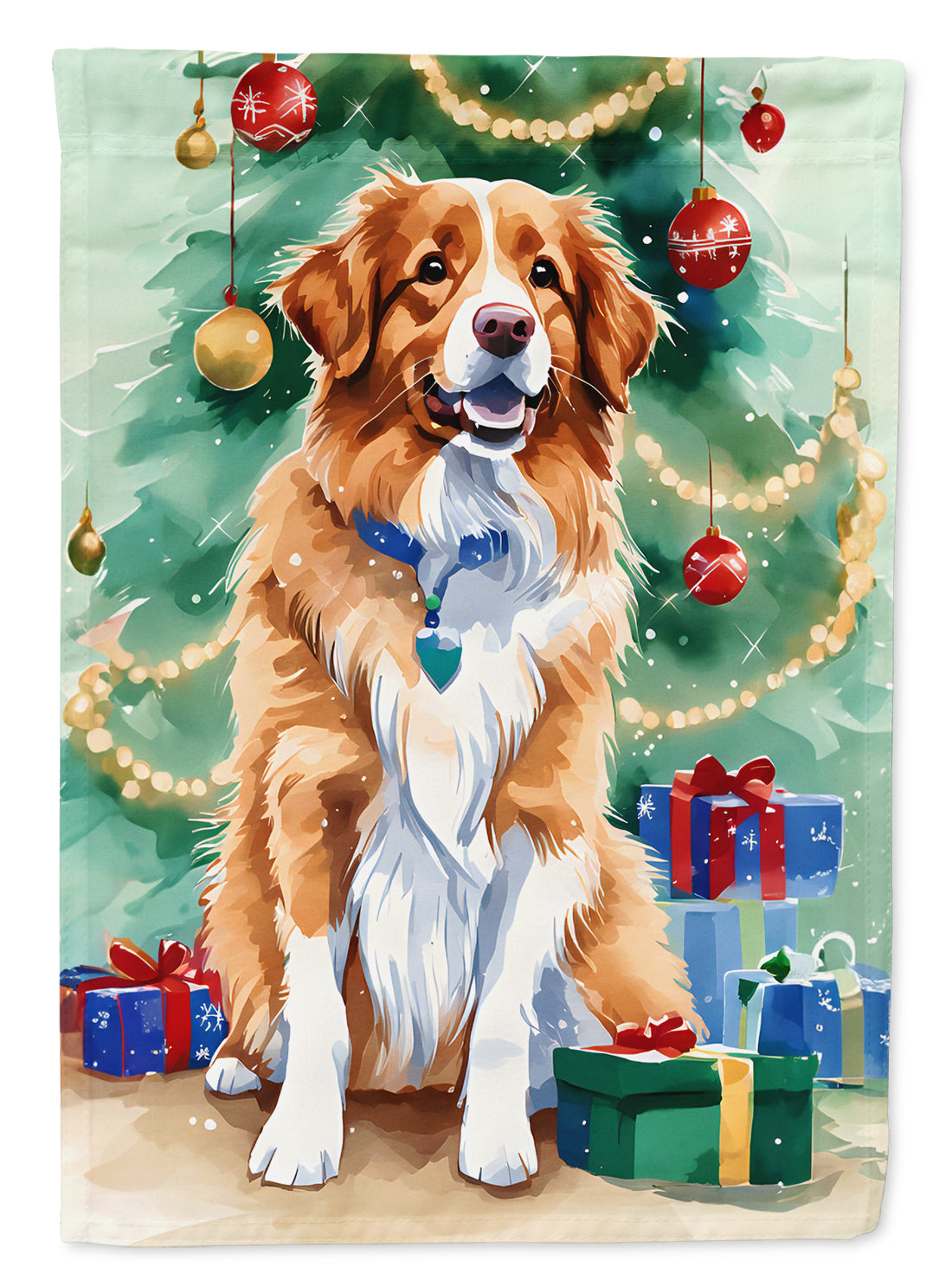 Decorate your space with our Christmas Nova Scotia Duck Tolling Retriever artwork on a Garden Flag. Enhance the beauty of your garden, patio, or yard with Caroline's Treasures Decorative Garden Flag, proudly made in the USA. Crafted from two pieces of thick, double-sided polyester fabric, this 2-ply garden flag is designed to withstand various weather conditions, making it water-resistant and weatherproof. Featuring correctly readable words on both sides, this garden flag offers a delightful visual experience from any angle. With its heavier weight, it stands out among other garden flags, ensuring stability and durability even in wind, rain, and snow. Measuring approximately 11 1/4 inches by 15 1/2 inches, this flag allows you to personalize your outdoor decor. It comes with a 1 1/2-inch sleeve sewn in, allowing easy attachment to any standard garden flag stand or garden size porch hanger (sold separately). Make a statement in your outdoor space with Caroline's Treasures Decorative Garden Flag, a vibrant and high-quality flag that adds color and personality to your surroundings. Proudly made in the USA, it's a symbol of quality craftsmanship and attention to detail.