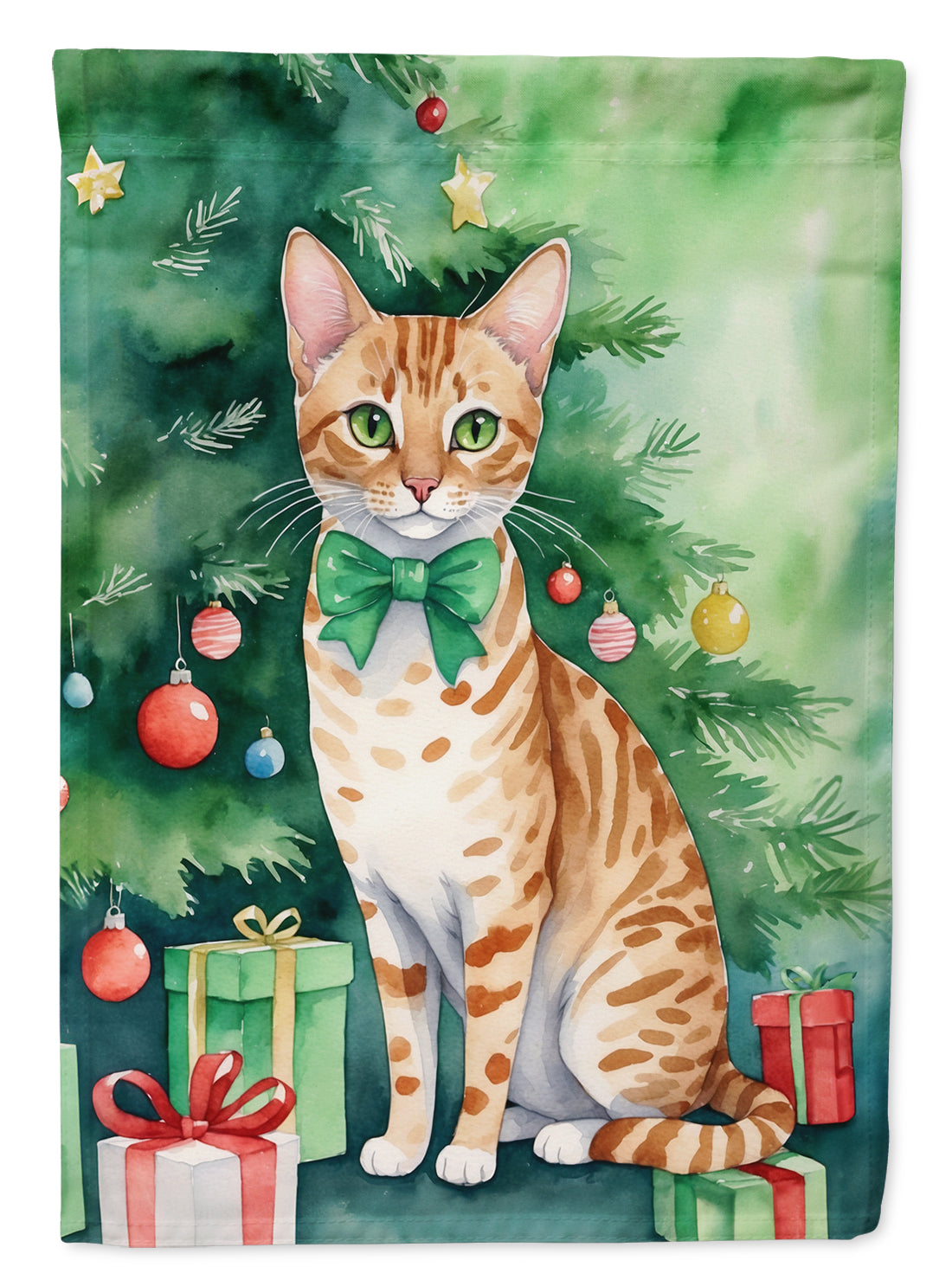 Garden Flag featuring breed specific Ocicat artwork. Celebrate Christmas with this Christmas Garden Flag. Enhance the beauty of your garden, patio, or yard with Caroline's Treasures Decorative Garden Flag, proudly made in the USA. Crafted from two pieces of thick, double-sided polyester fabric, this 2-ply garden flag is designed to withstand various weather conditions, making it water-resistant and weatherproof. Featuring correctly readable words on both sides, this garden flag offers a delightful visual experience from any angle. With its heavier weight, it stands out among other garden flags, ensuring stability and durability even in wind, rain, and snow. Measuring approximately 11 1/4 inches by 15 1/2 inches, this flag allows you to personalize your outdoor decor. It comes with a 1 1/2-inch sleeve sewn in, allowing easy attachment to any standard garden flag stand or garden size porch hanger (sold separately). Make a statement in your outdoor space with Caroline's Treasures Decorative Garden Flag, a vibrant and high-quality flag that adds color and personality to your surroundings. Proudly made in the USA, it's a symbol of quality craftsmanship and attention to detail.