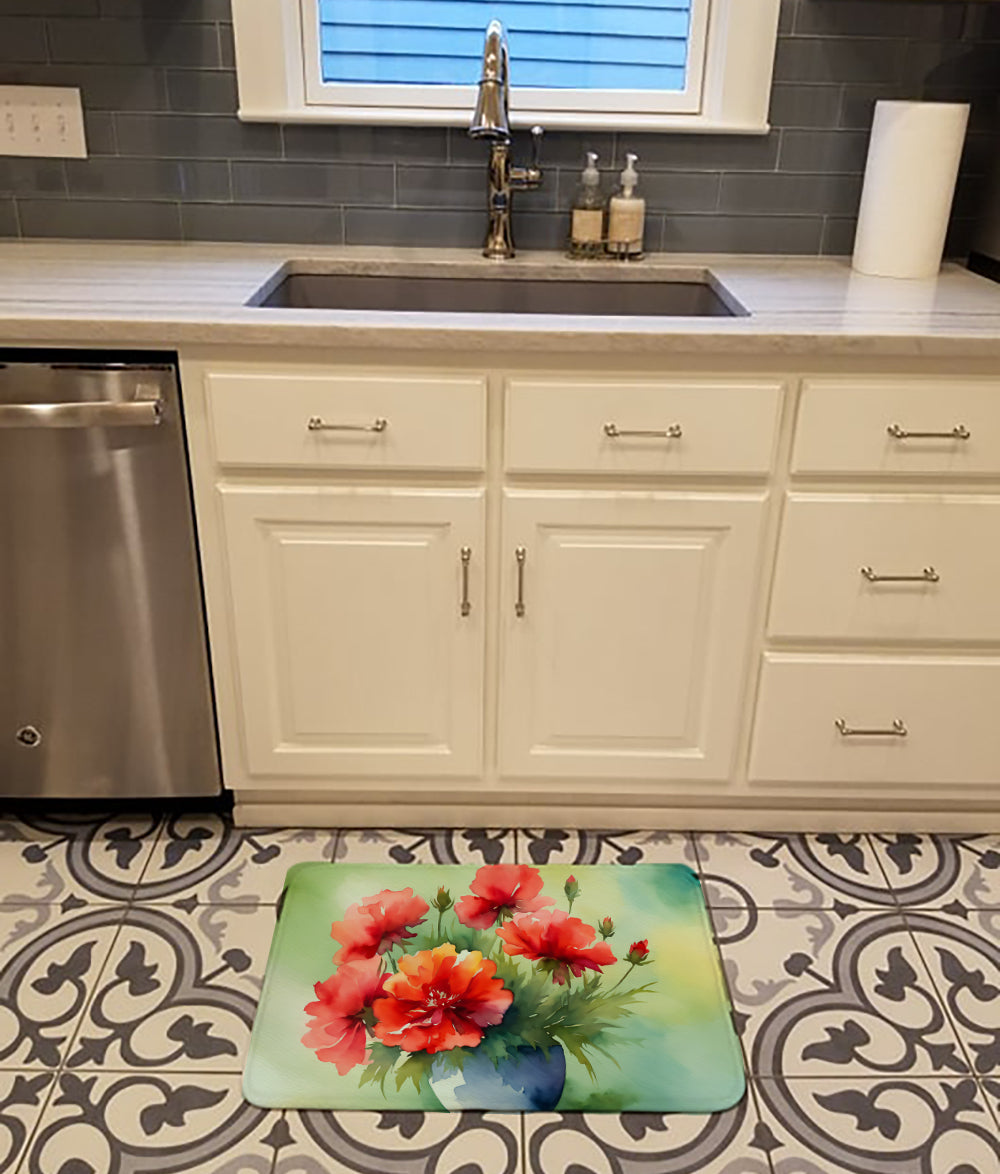 Ohio Scarlet Carnations in Watercolor Memory Foam Kitchen Mat