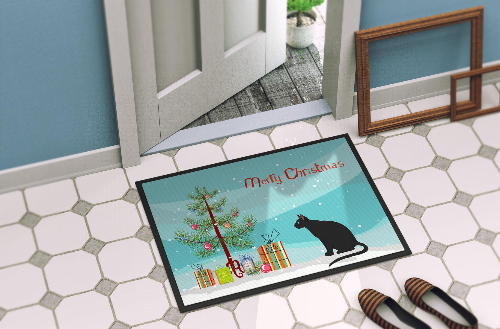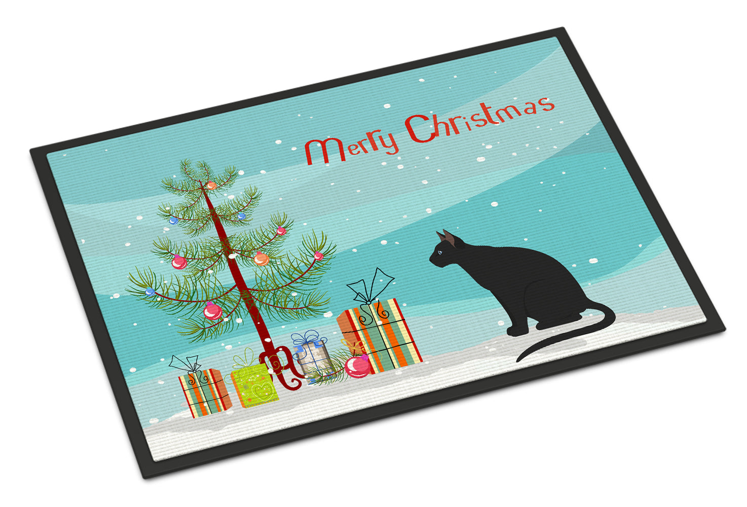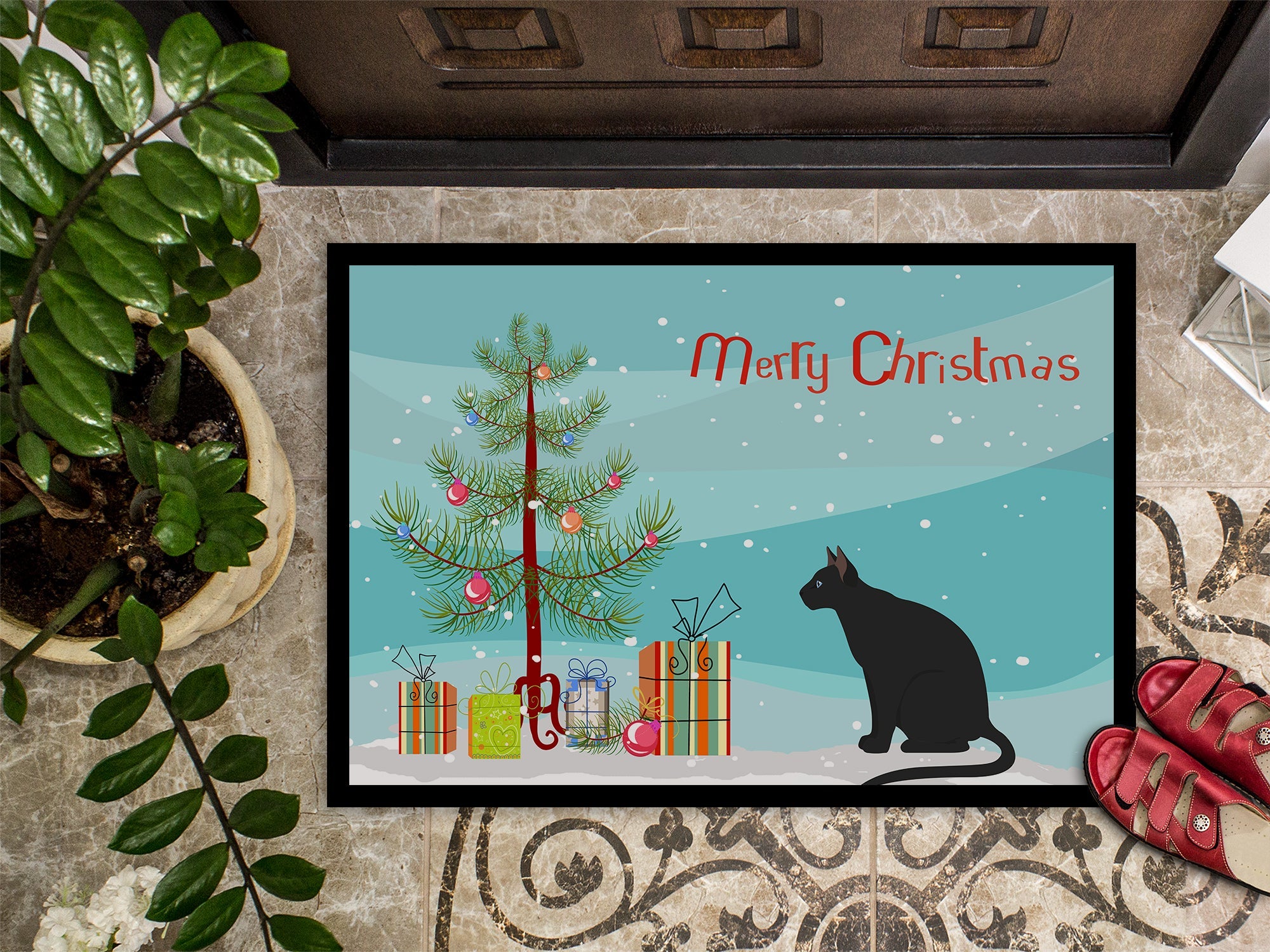 Ojos Azules Cat Merry Christmas Doormat - 24x36 Decorative Floor Mat – Indoor/Outdoor Rug with Artistic Flair CK4781JMAT