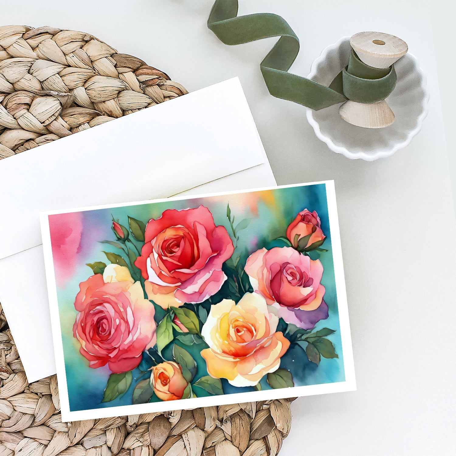 Decorate your space with our Oklahoma Roses artwork on a . Celebrate special moments with Caroline's Treasures Printed Greeting Card Pack. This pack includes eight beautifully folded 5x7 cards, accompanied by eight matching white envelopes. With blank interiors, these cards provide ample space for your personalized messages and heartfelt holiday greetings. Each card features captivating full-color artwork, meticulously printed in our facility on high-quality 80 lb cover stock or 216 GSM. The super smooth finish of the white cards enhances the visual impact of the artwork, creating a truly stunning presentation. Designed by our talented in-house artists or licensed artists, the artwork on these cards showcases their creativity and attention to detail. From vibrant illustrations to captivating designs, each card tells its own unique story. Whether it's for birthdays, anniversaries, holidays, or any special occasion, Caroline's Treasures Greeting Card Pack is the perfect way to convey your heartfelt sentiments. Share joy, love, and warm wishes with these exquisite cards and make every moment unforgettable.