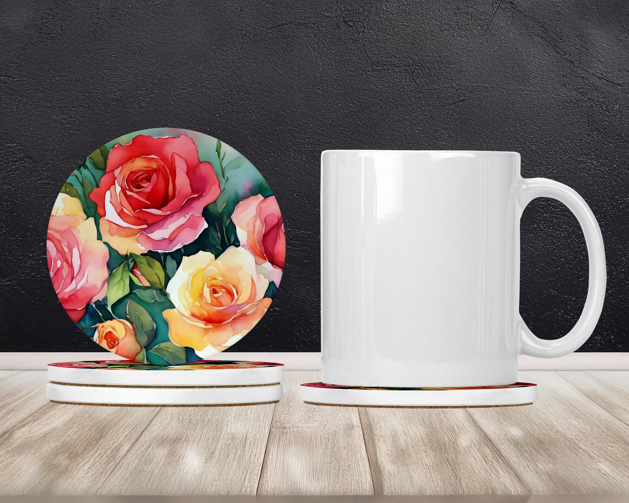 Oklahoma Roses in Watercolor Large Sandstone Coasters Pack of 4